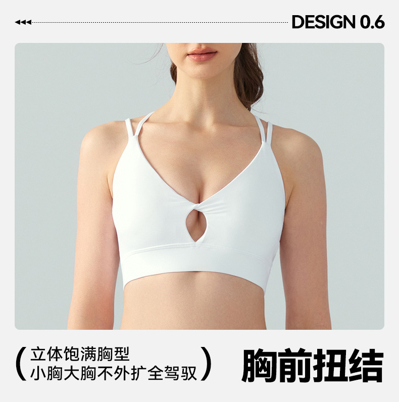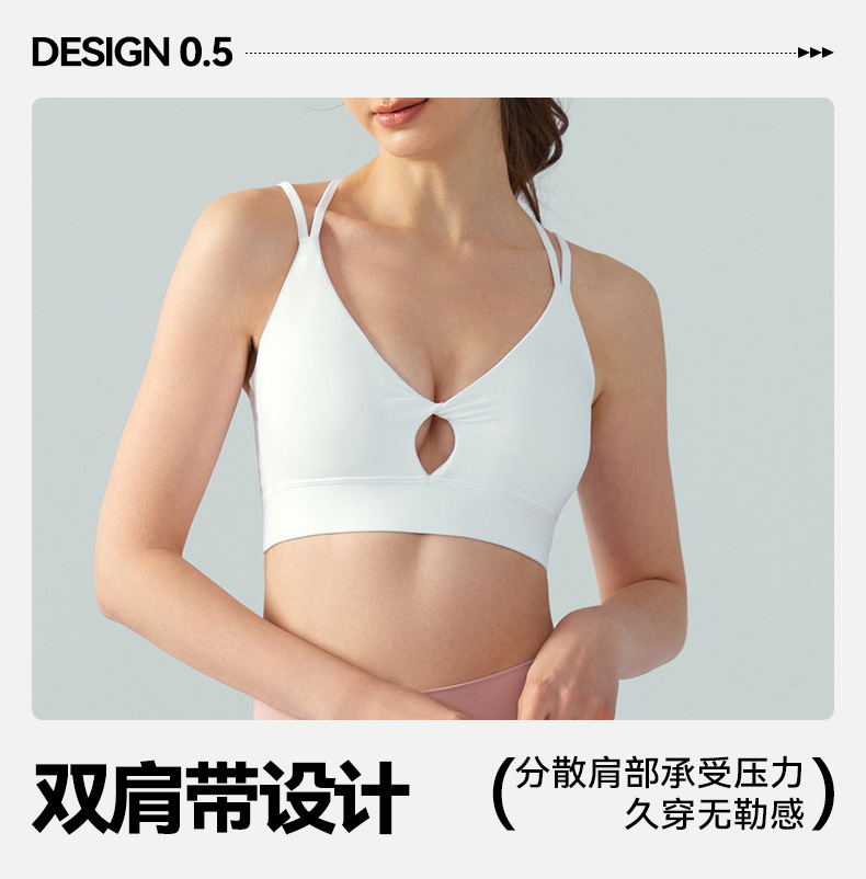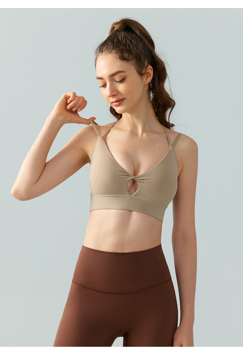 2022 new triangle beauty back fitness sports bra thin shoulder straps gathered nude yoga bra