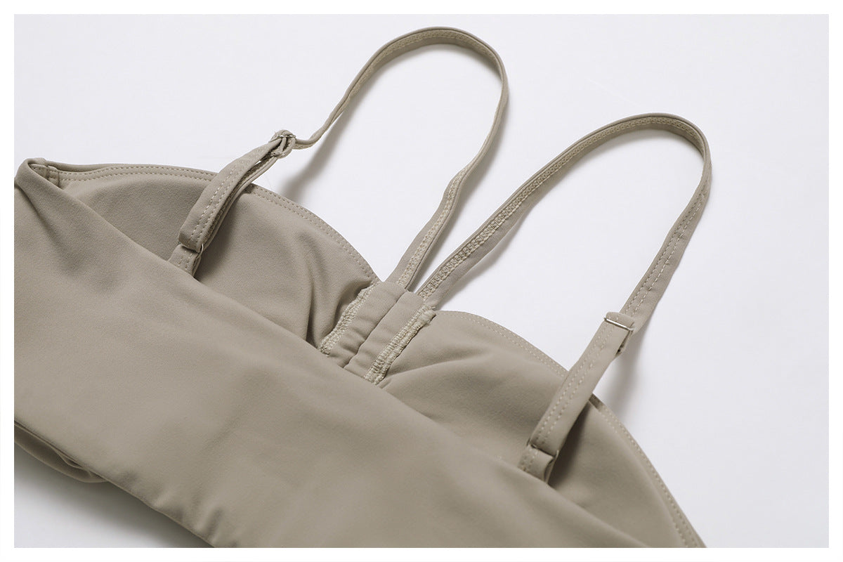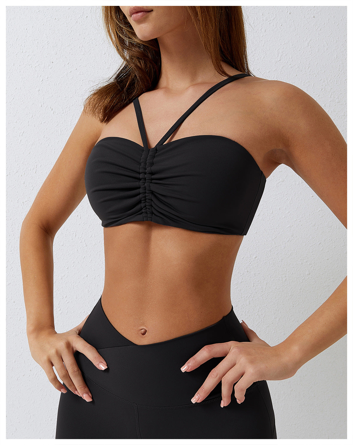 2022 new triangle beauty back fitness sports bra thin shoulder straps gathered nude yoga bra