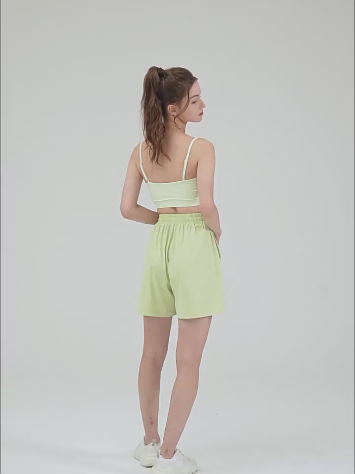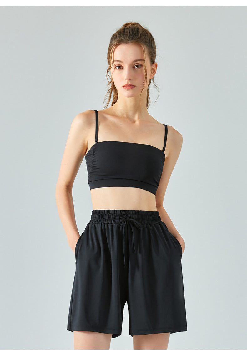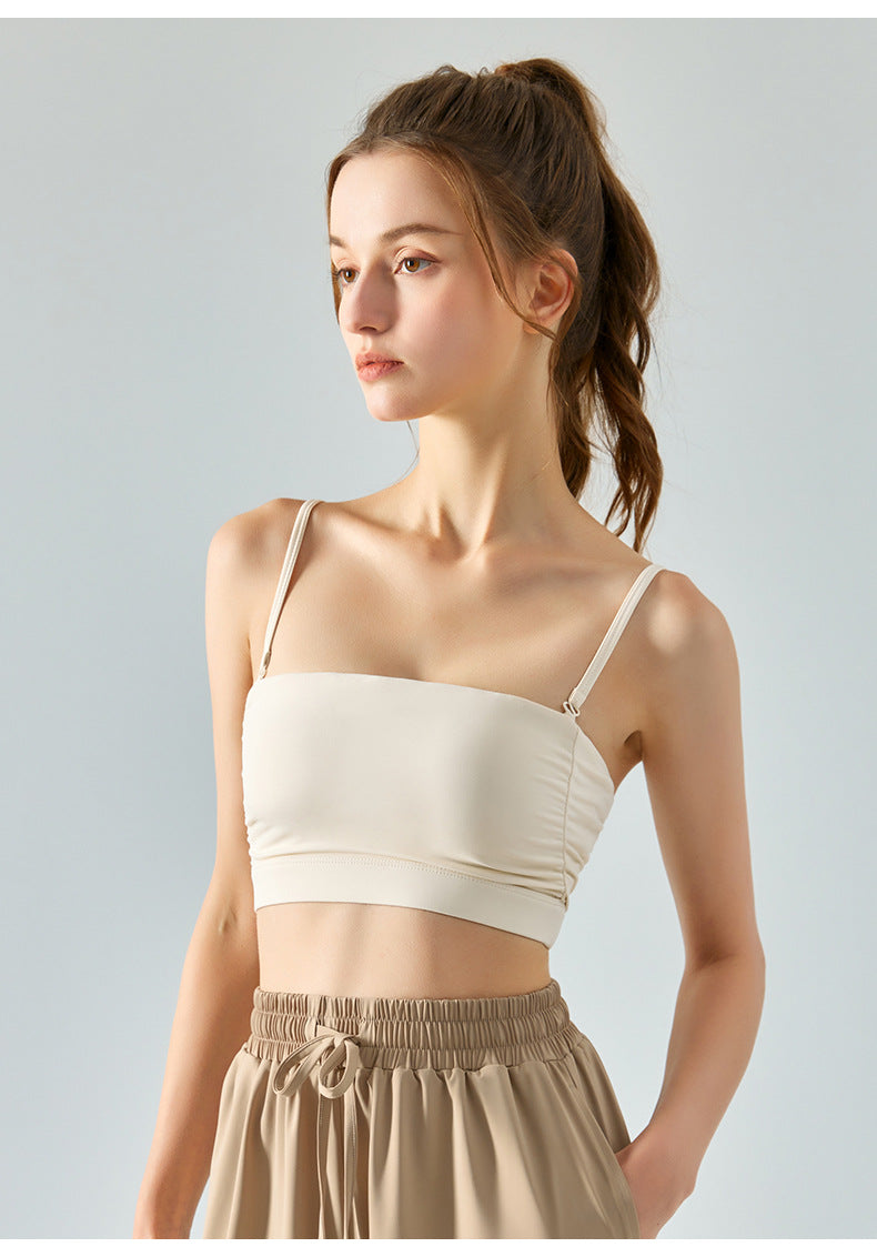 Multi-wear sports fitness vest with chest pad thin shoulder straps yoga bra solid color sling bra