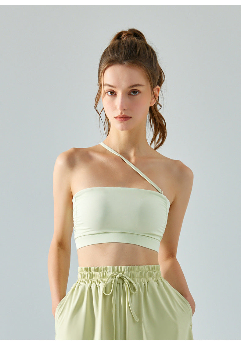 03/2025 Summer Yoga vest top Women with breast pad Beautiful back halter vest no underwire push-up bra