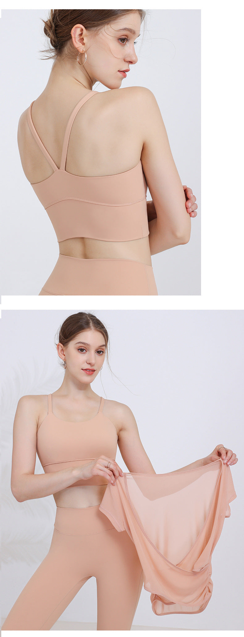 Yoga clothing sports bra women gather bra running fitness bra outer mesh gauze blouse suit
