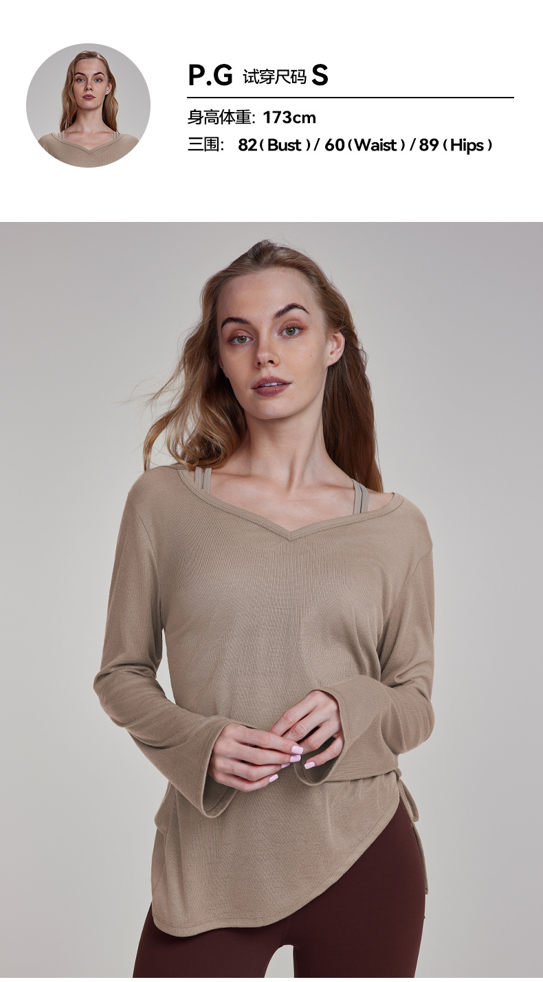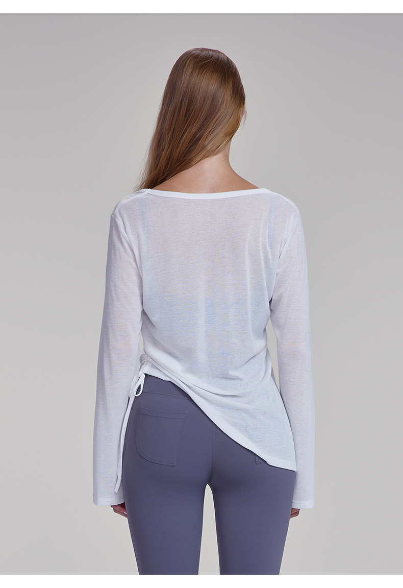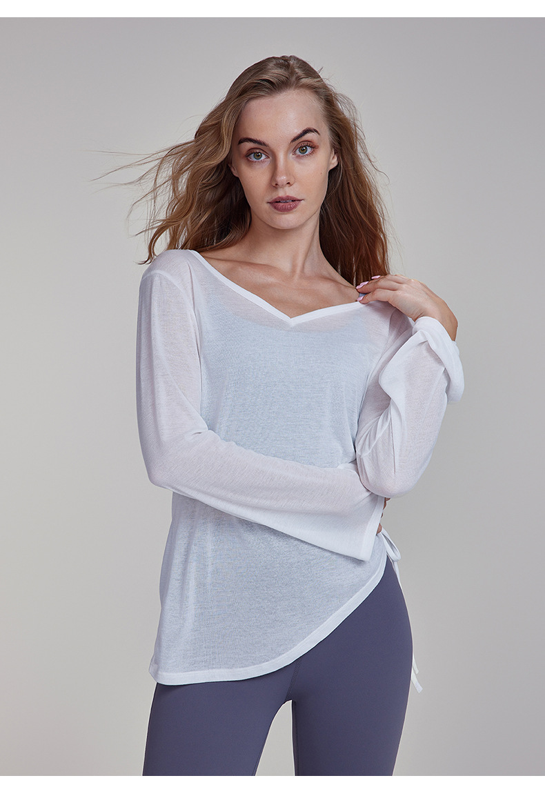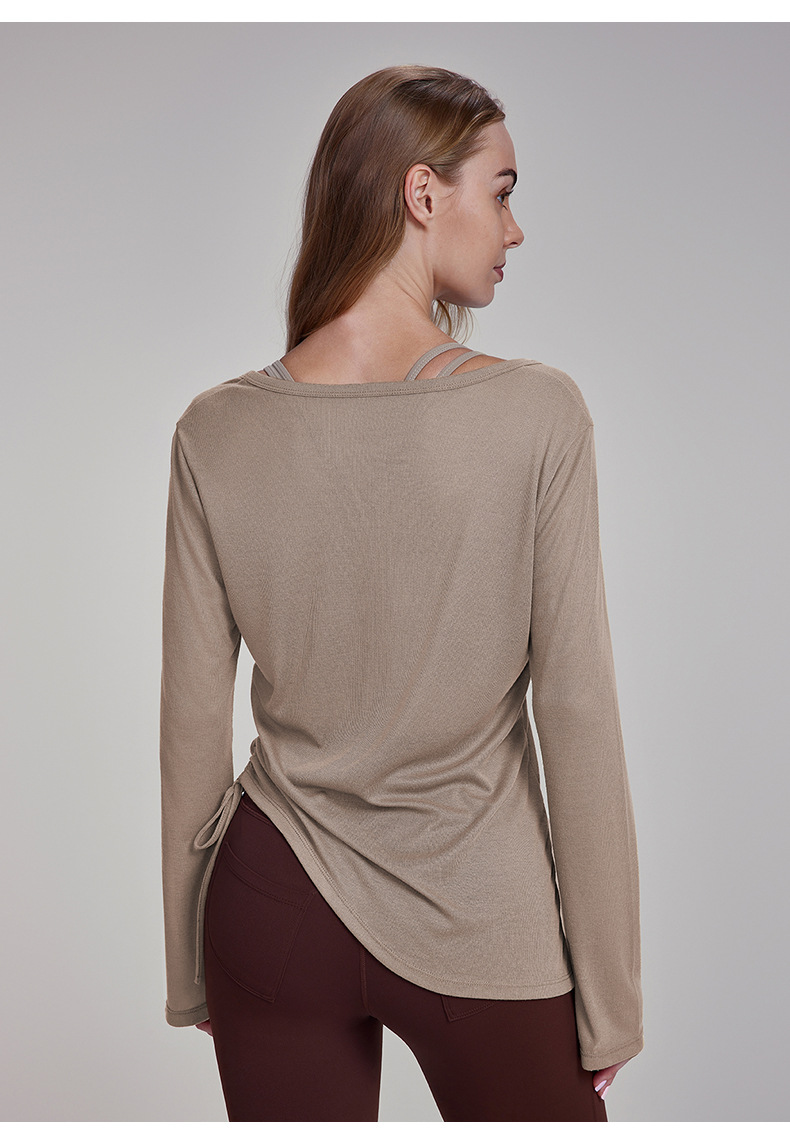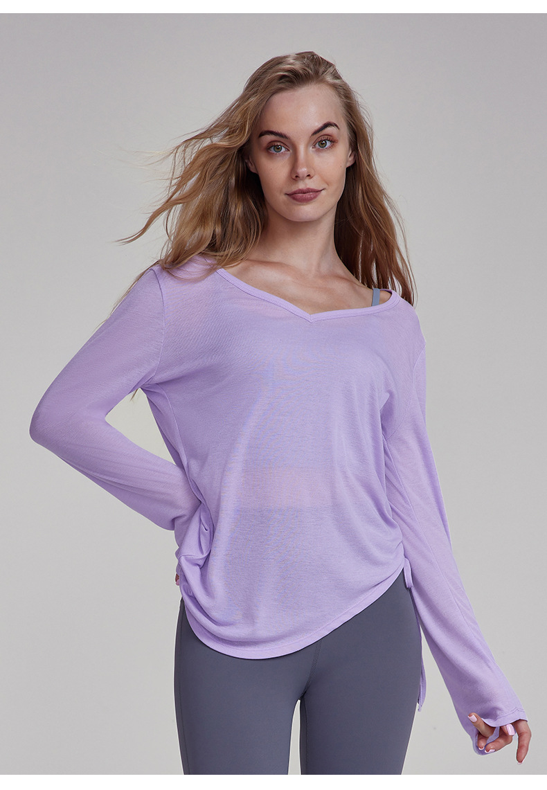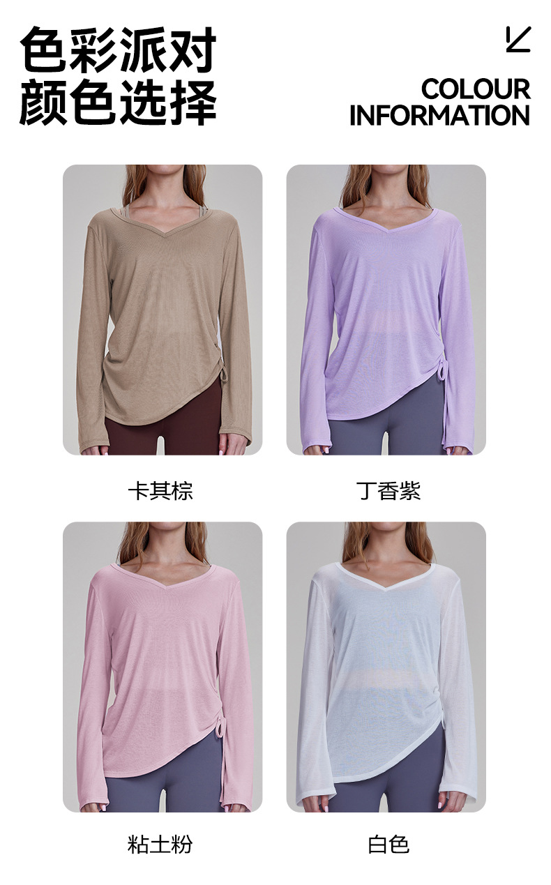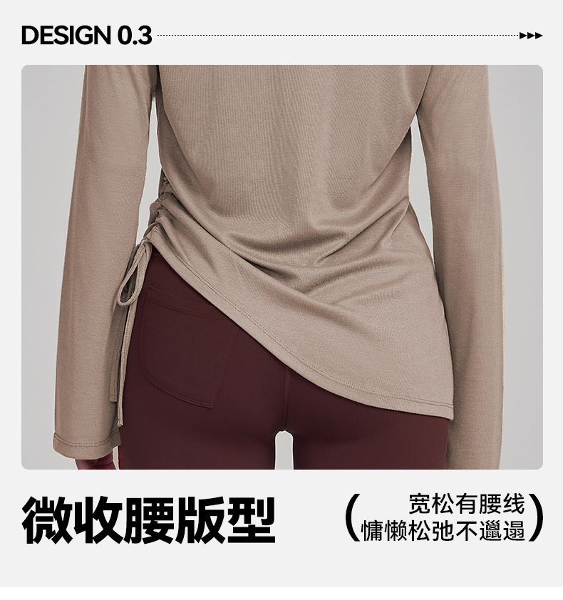 09/2024 Yoga smock long sleeve cover buttock women fold drawstring T-shirt loose casual autumn fitness yoga wear
