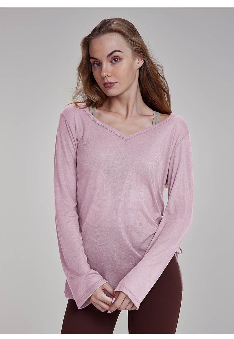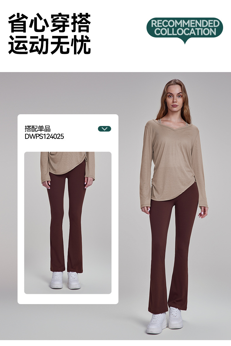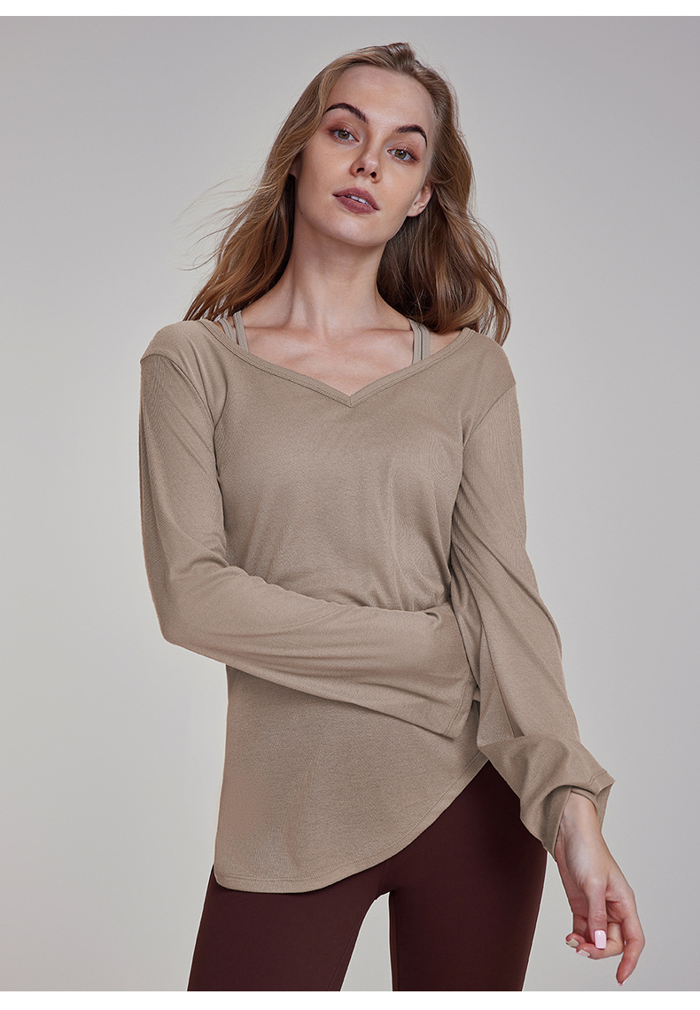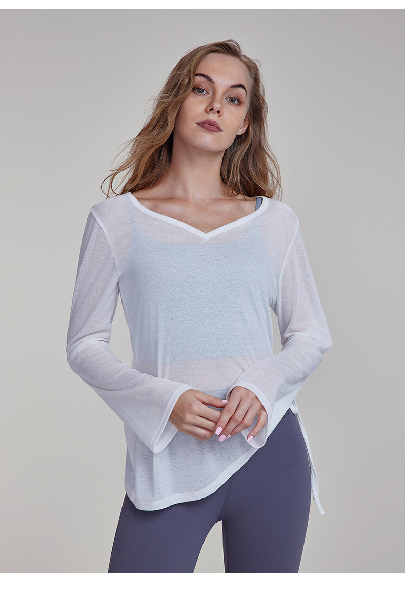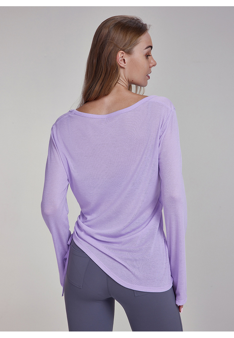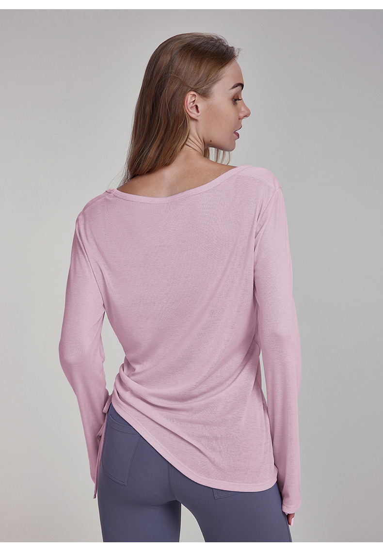 09/2024 Yoga smock long sleeve cover buttock women fold drawstring T-shirt loose casual autumn fitness yoga wear