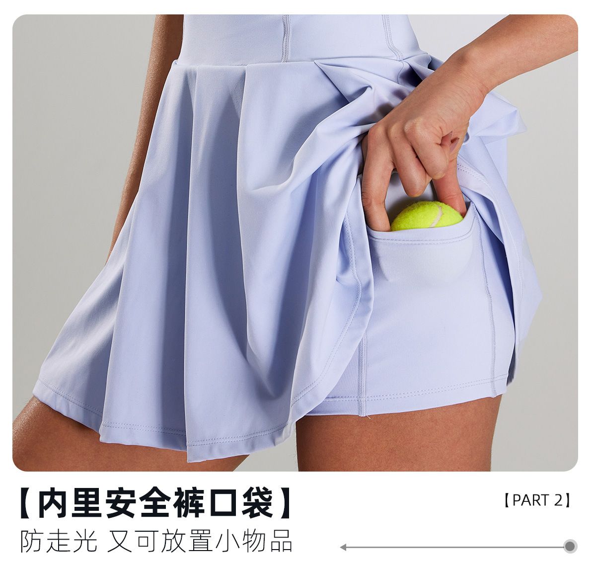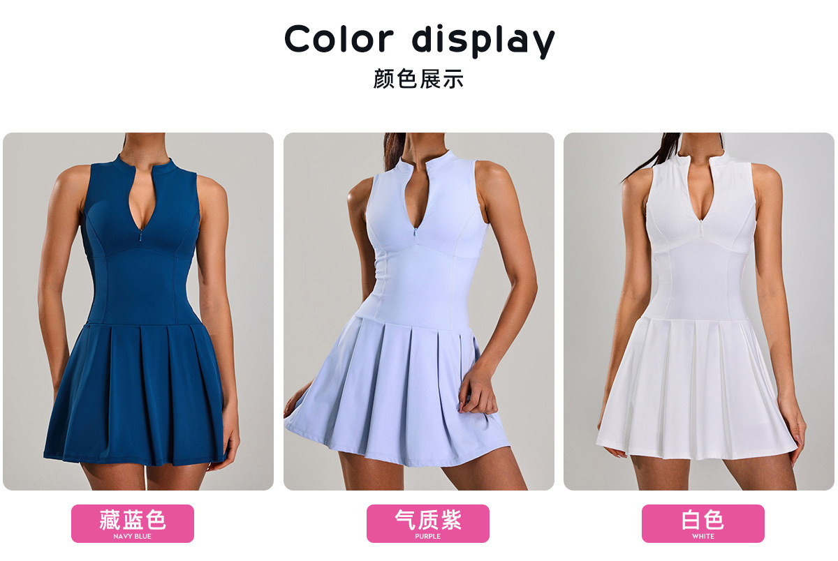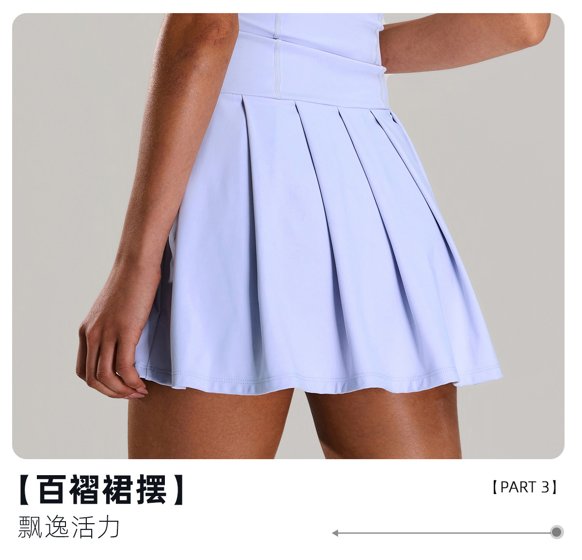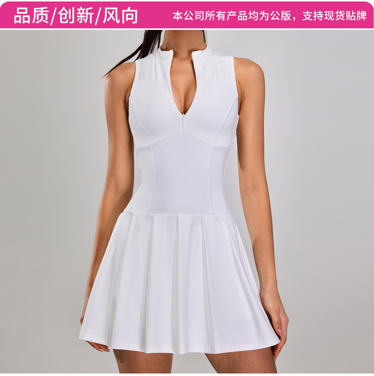 03/2025 Fake two-piece anti-exposure tight sports dress for women with zipper waist slimming fitness tennis skirt