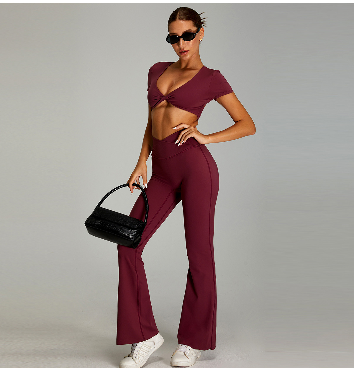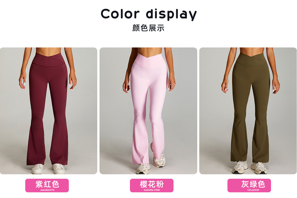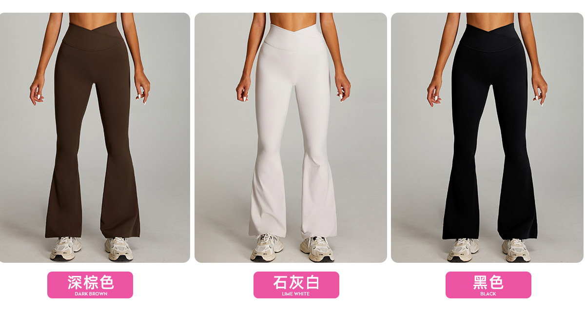 04/2025 Cross High Waist Yoga Pants Women's Nude Hip Lift Fitness Bootcut Pants Casual Sports Slimming Fitness Pants