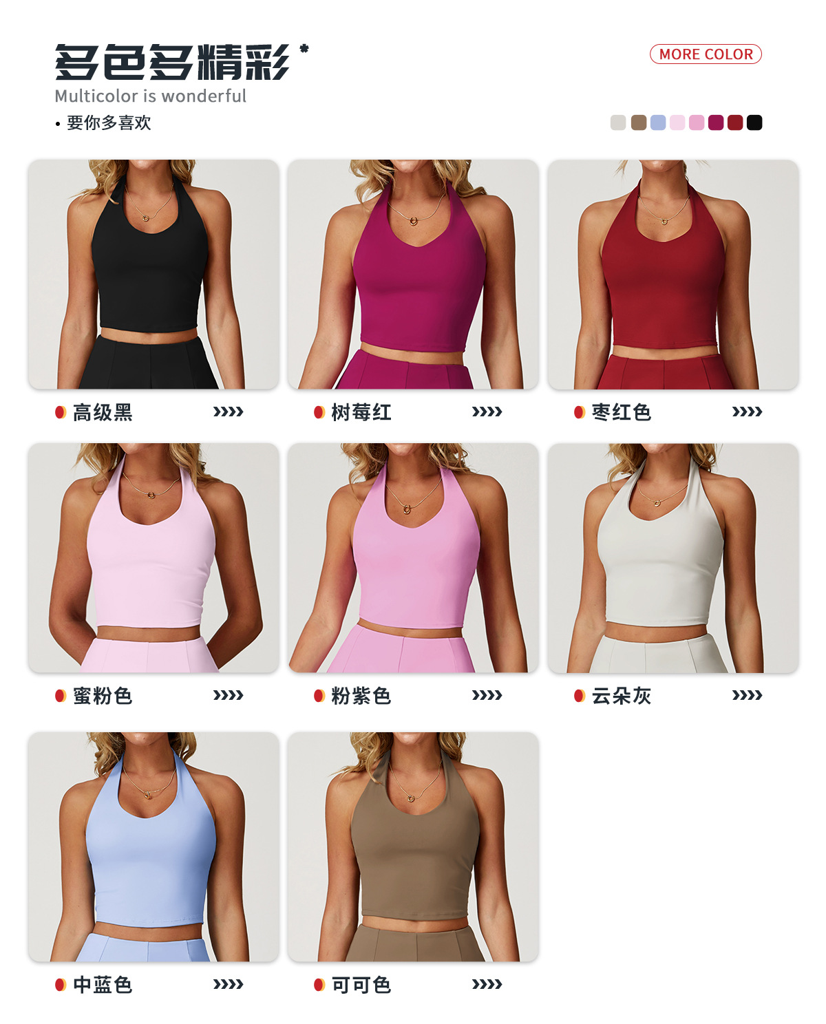 03/2025 Summer Yoga vest top Women with breast pad Beautiful back halter vest no underwire push-up bra