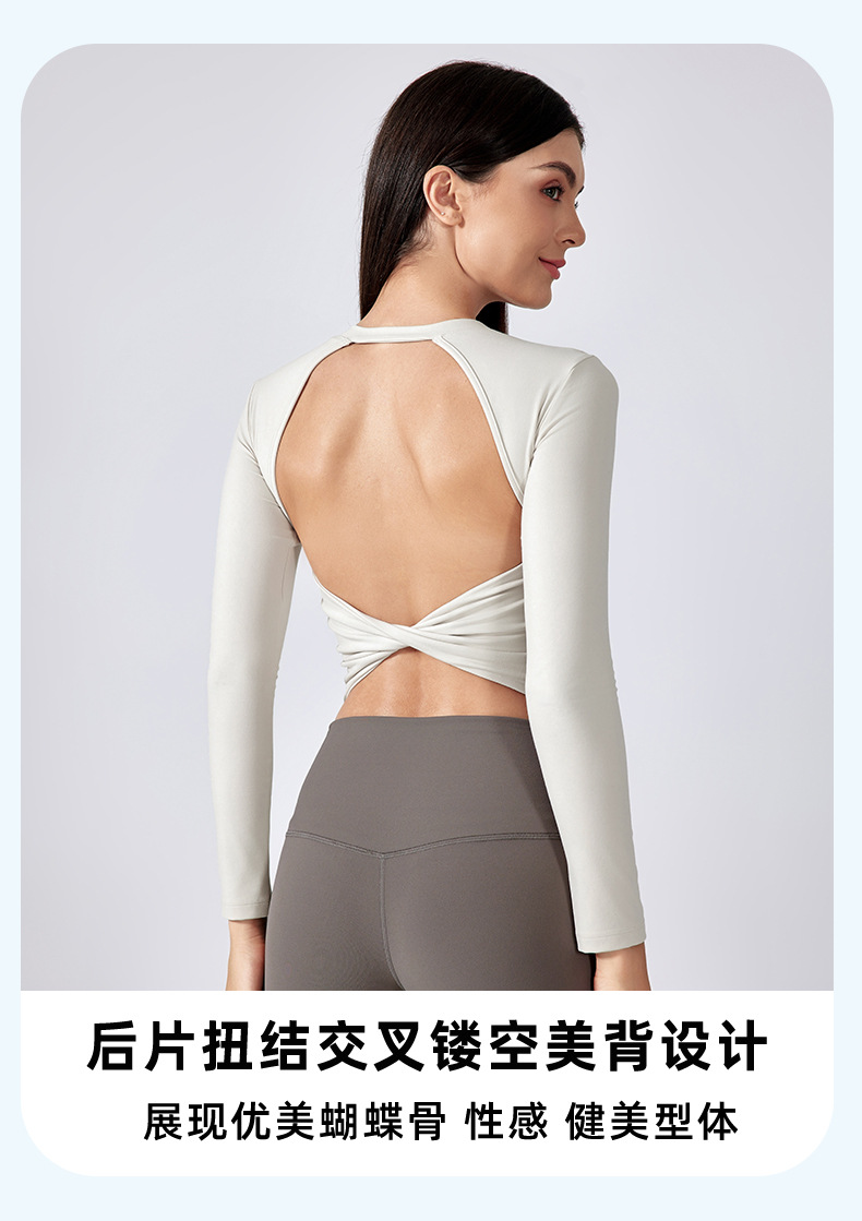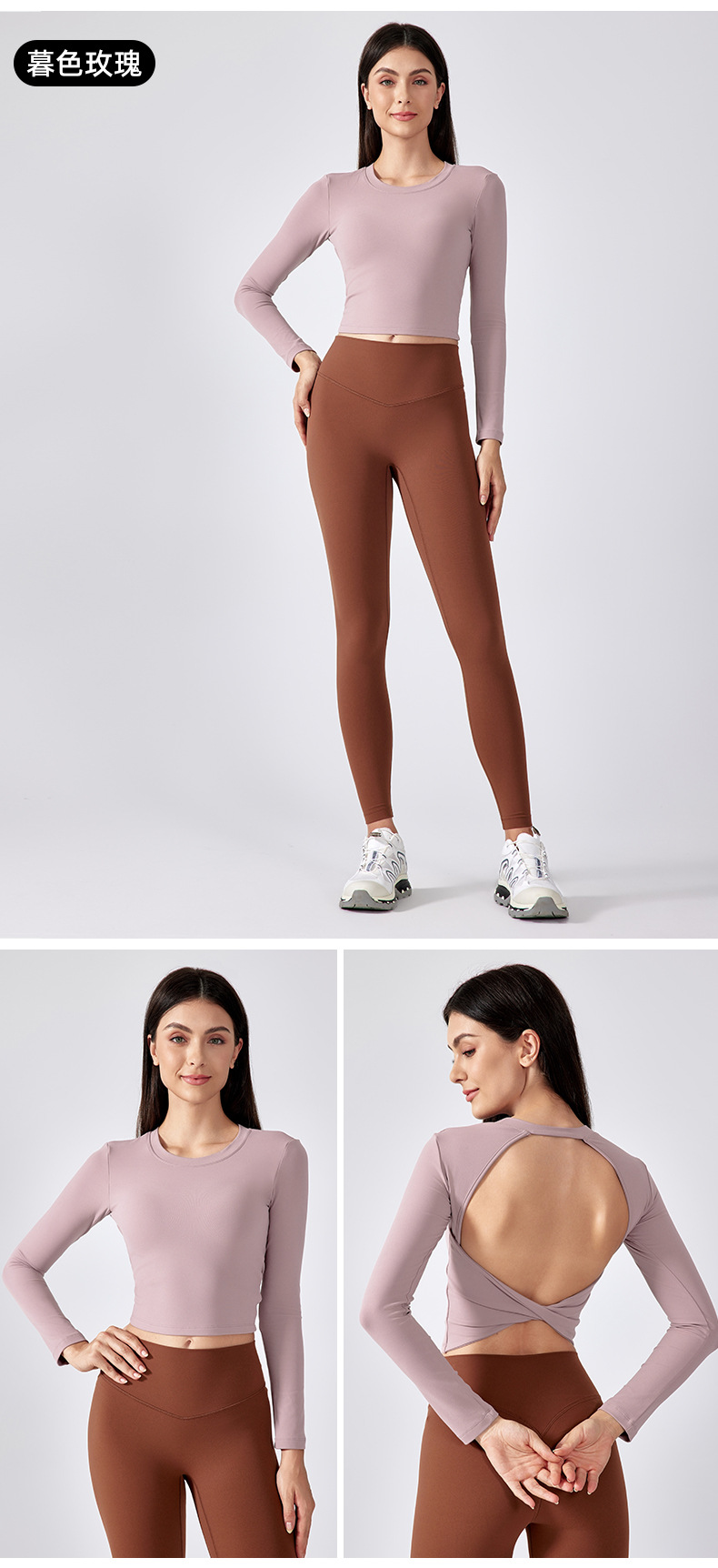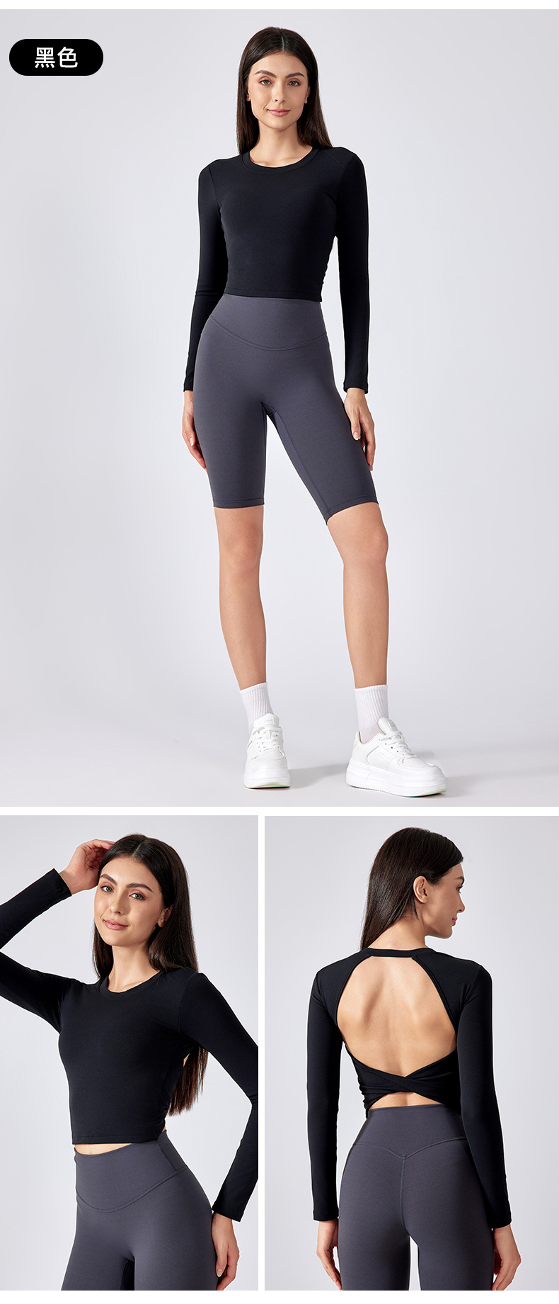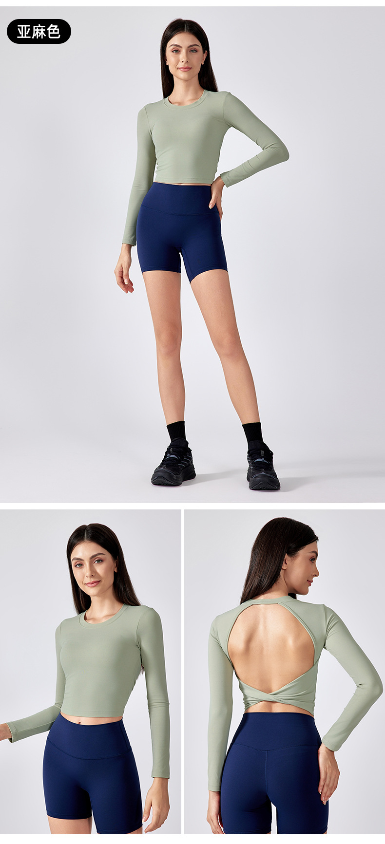 09/2024 Beautiful back yoga clothes for women nude tight slimming sports t-shirt short running fitness long-sleeved top DAW186