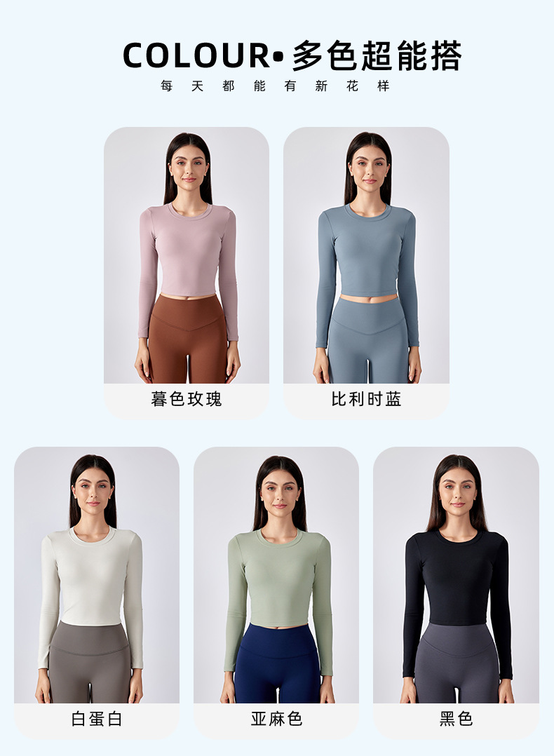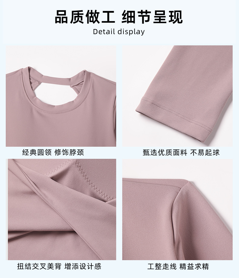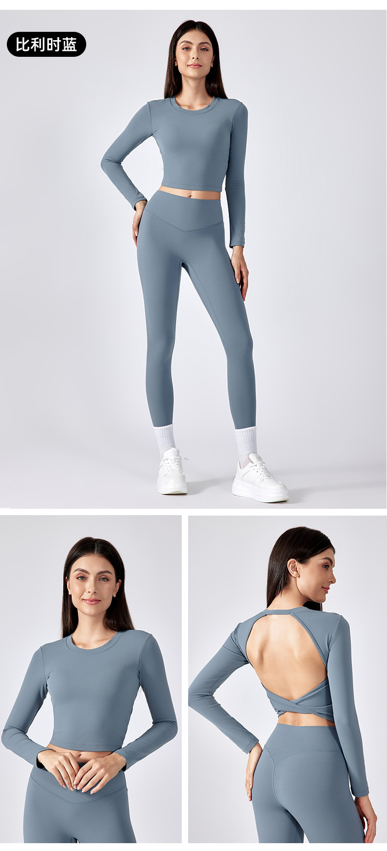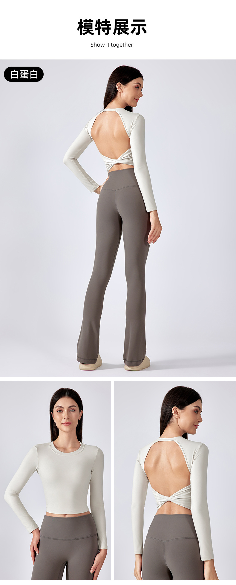 09/2024 Beautiful back yoga clothes for women nude tight slimming sports t-shirt short running fitness long-sleeved top DAW186
