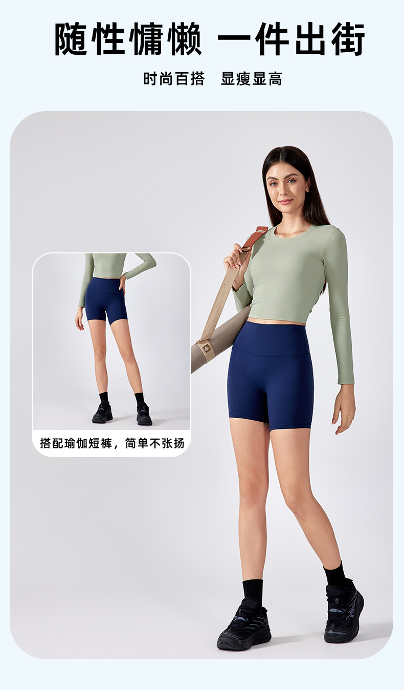 2024 new colors 2022 spring and summer new high waist shorts nude T-line yoga pants women's European and American peach hip lift three-point fitness pants