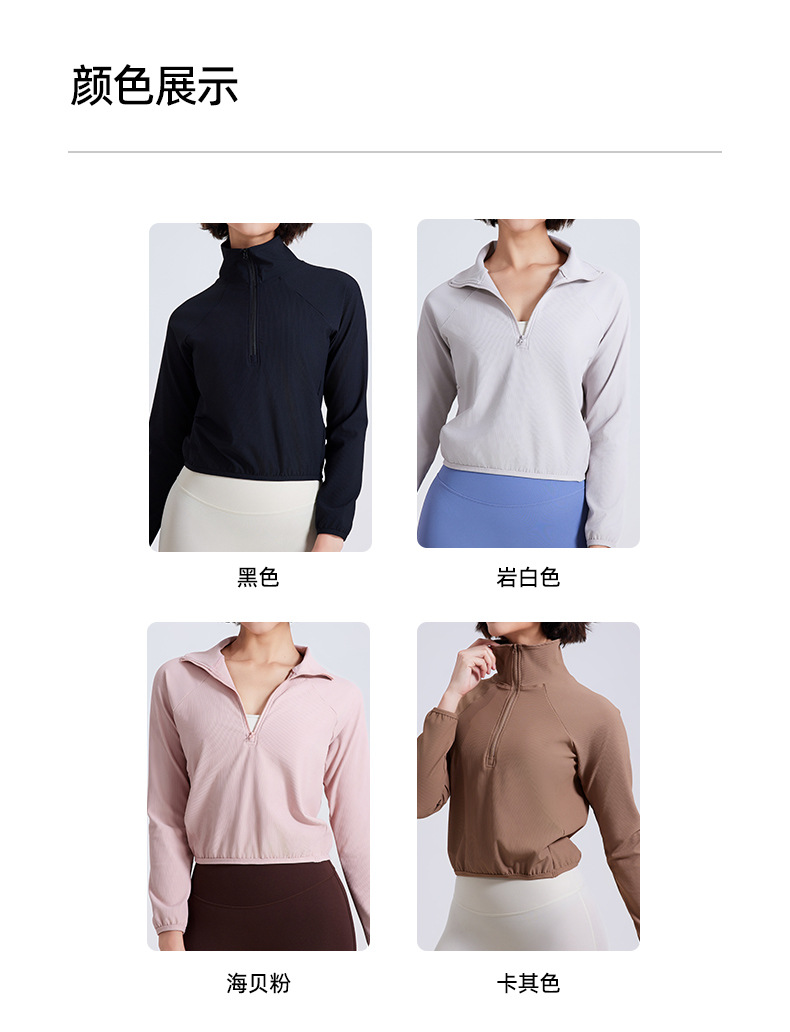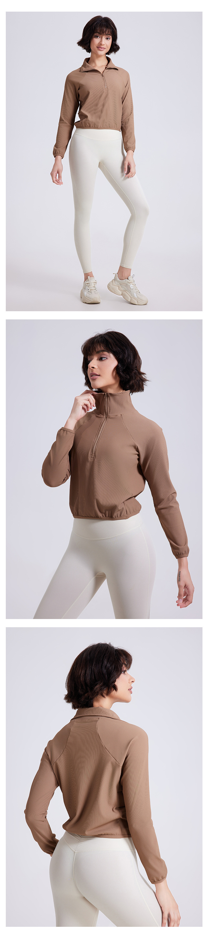 10/2023 Autumn and winter half zip sports coat women pocket loose fitness wear hoodie running casual yoga wear top