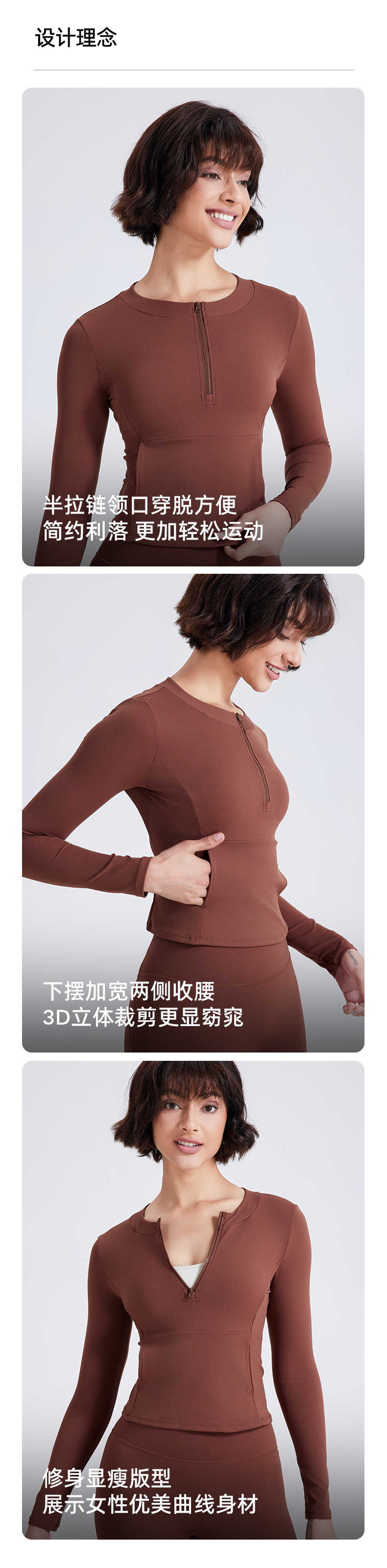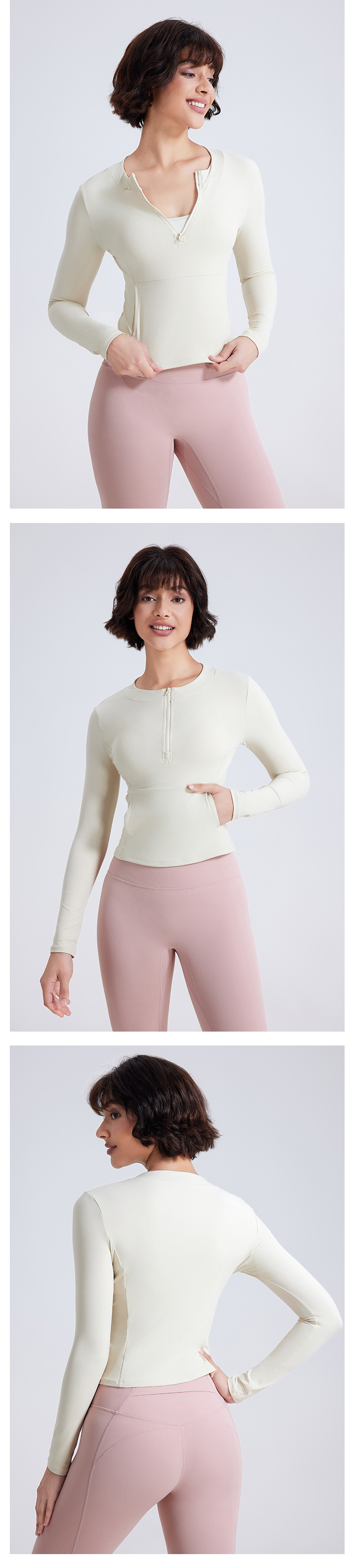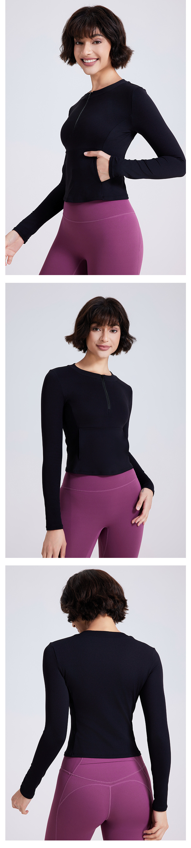 10/2023 Round neck half zip naked yoga dress T-shirt Women's waist slimming fitness wear long sleeve tight running blazer