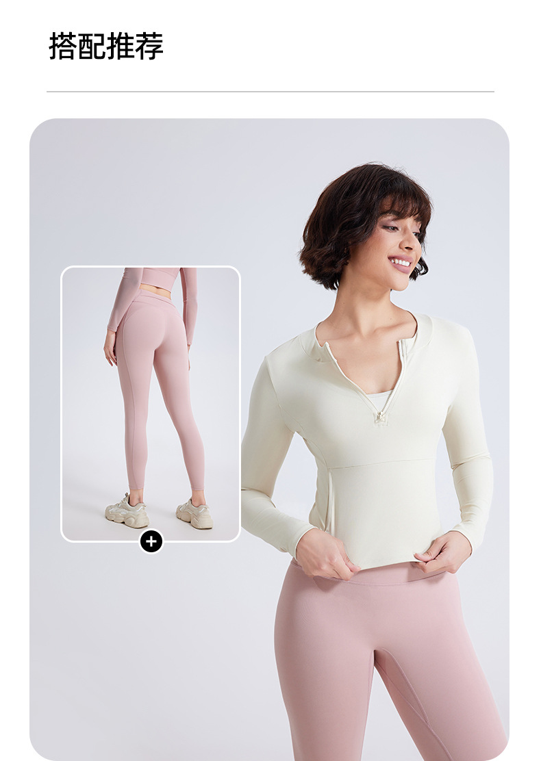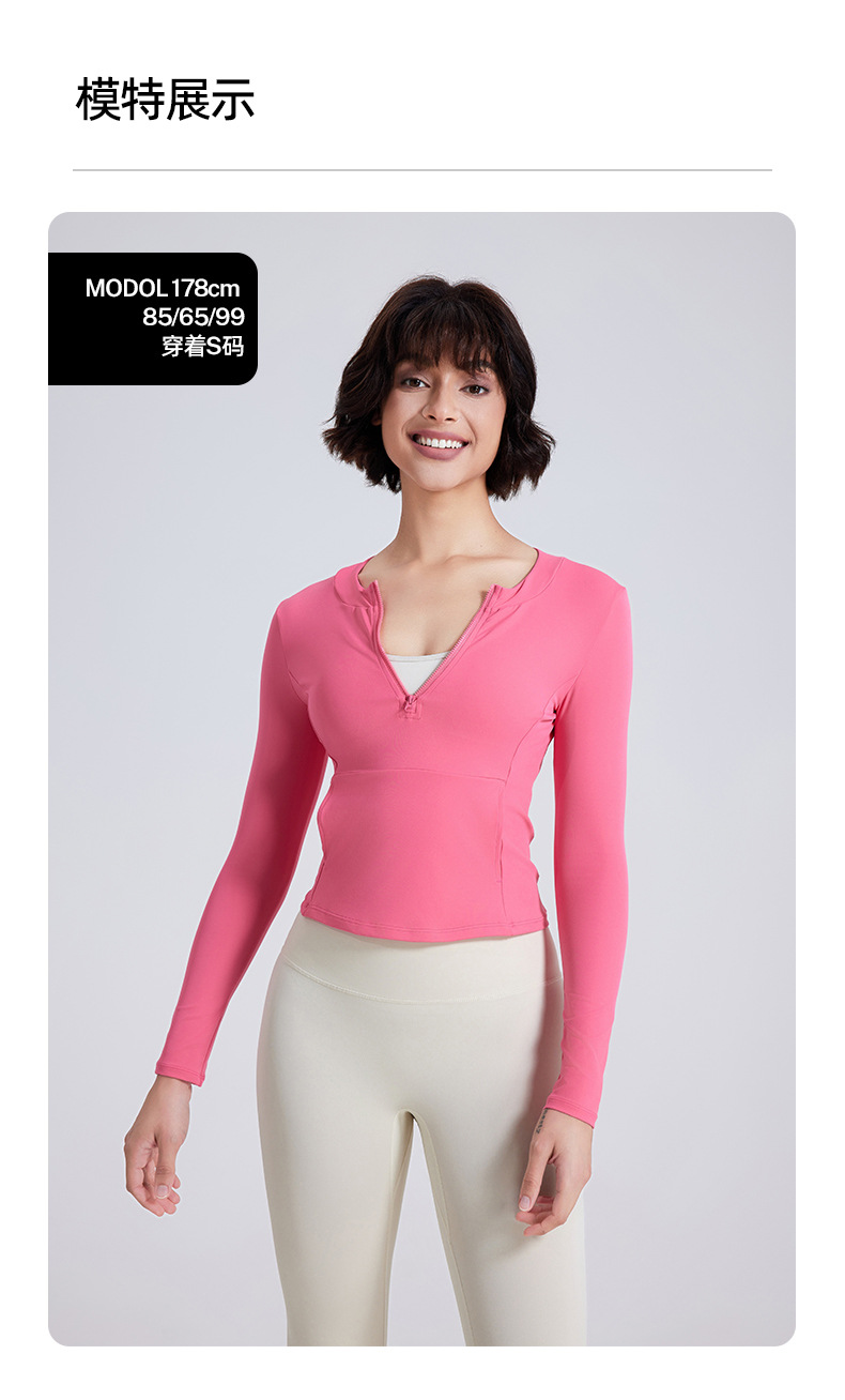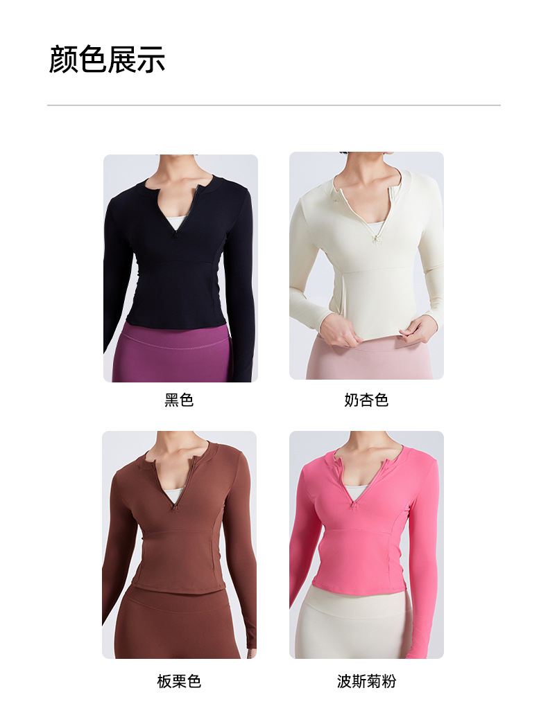 10/2023 Round neck half zip naked yoga dress T-shirt Women's waist slimming fitness wear long sleeve tight running blazer