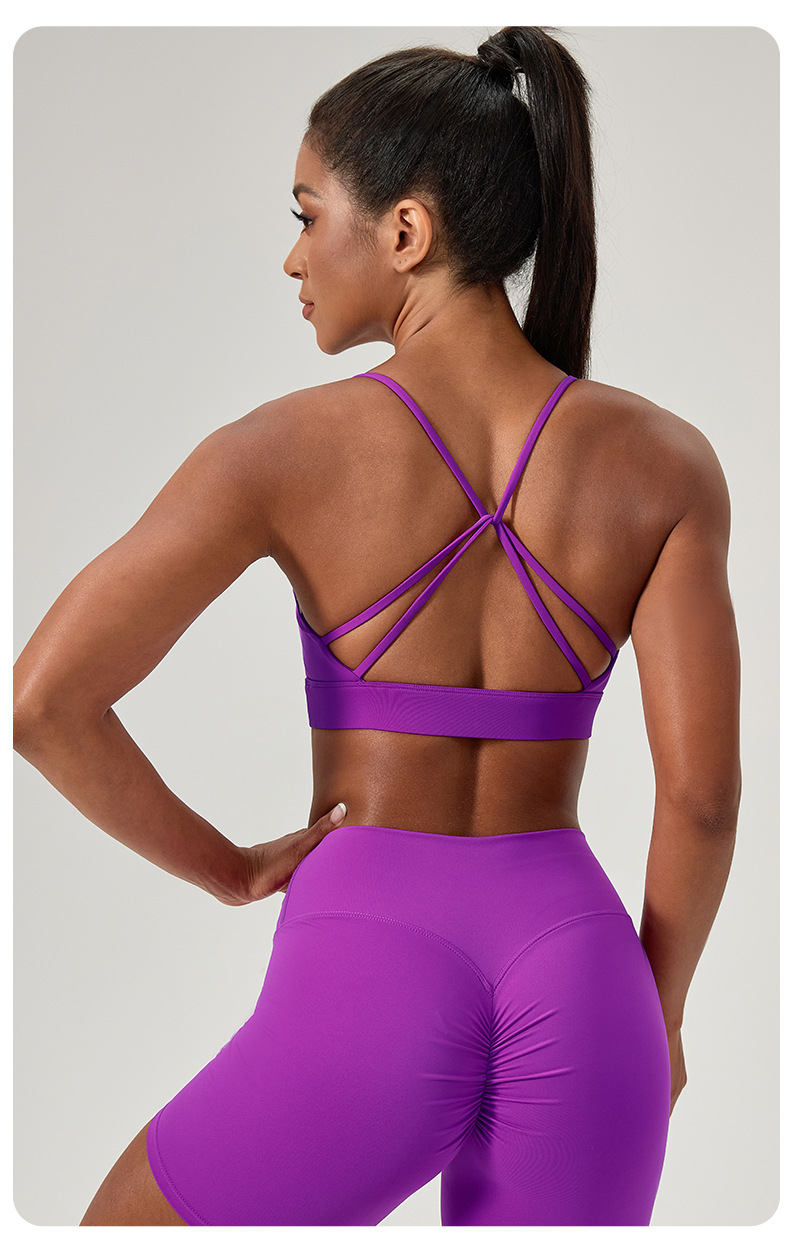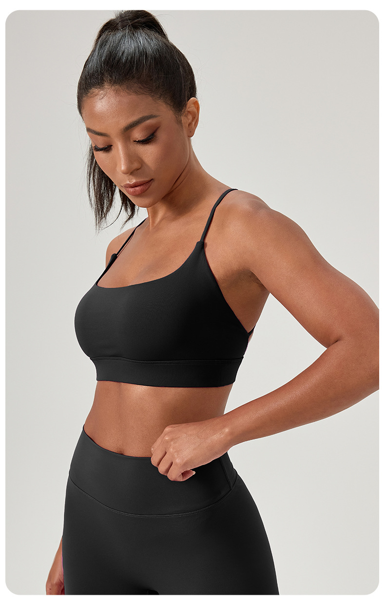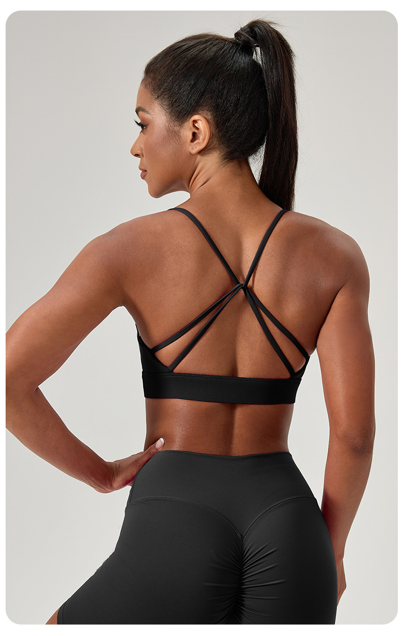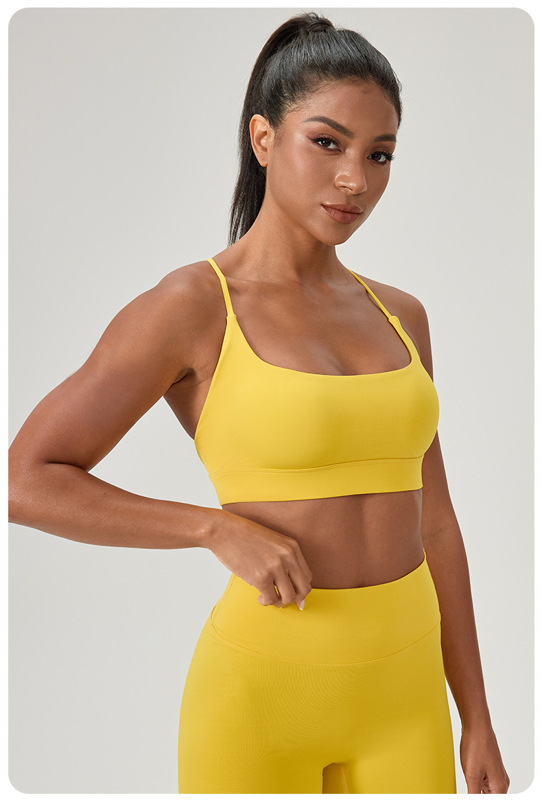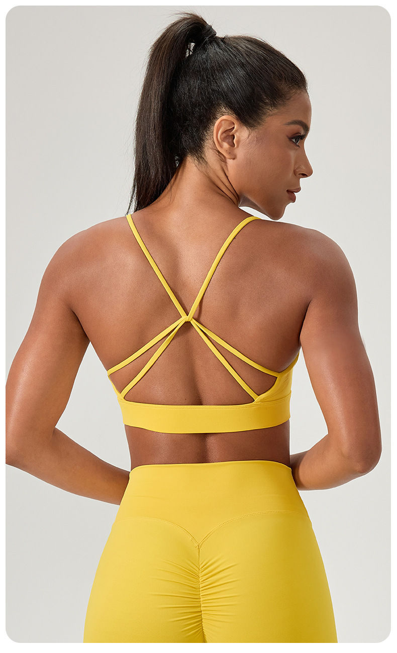 2022 new triangle beauty back fitness sports bra thin shoulder straps gathered nude yoga bra