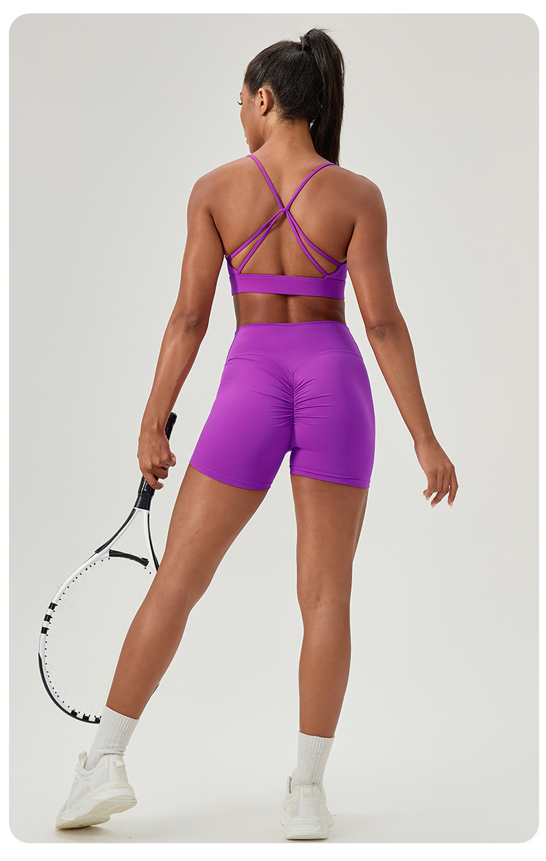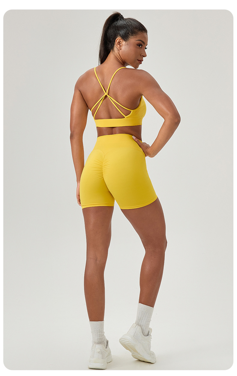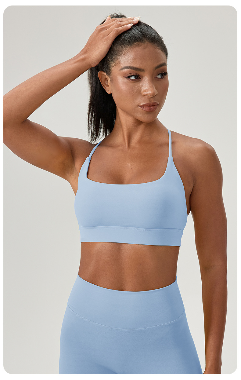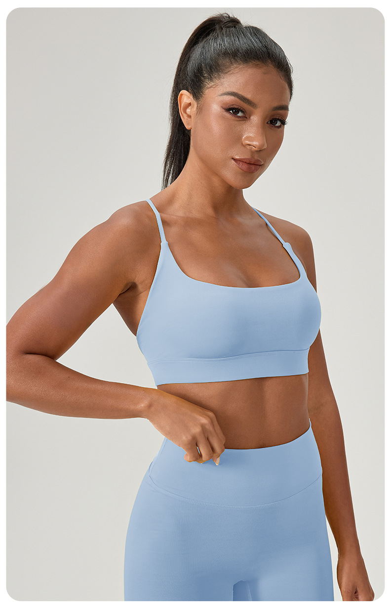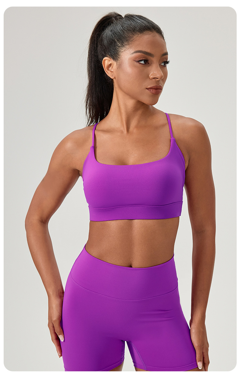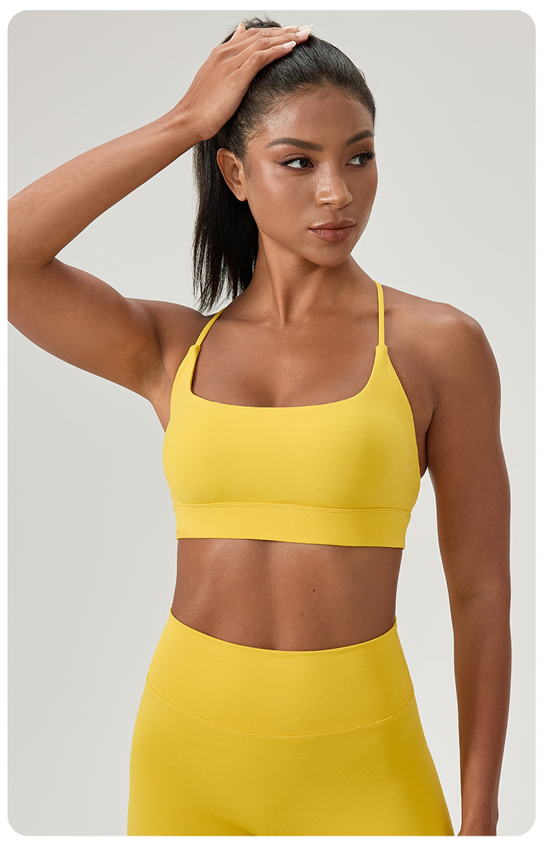 2022 new triangle beauty back fitness sports bra thin shoulder straps gathered nude yoga bra