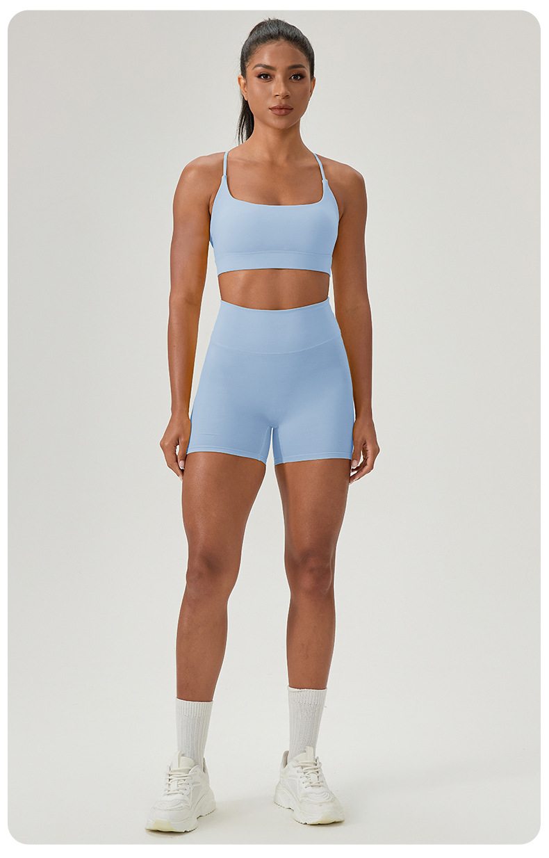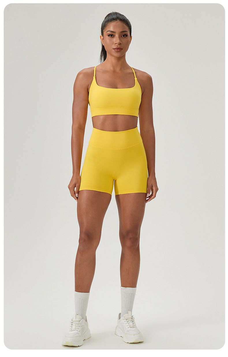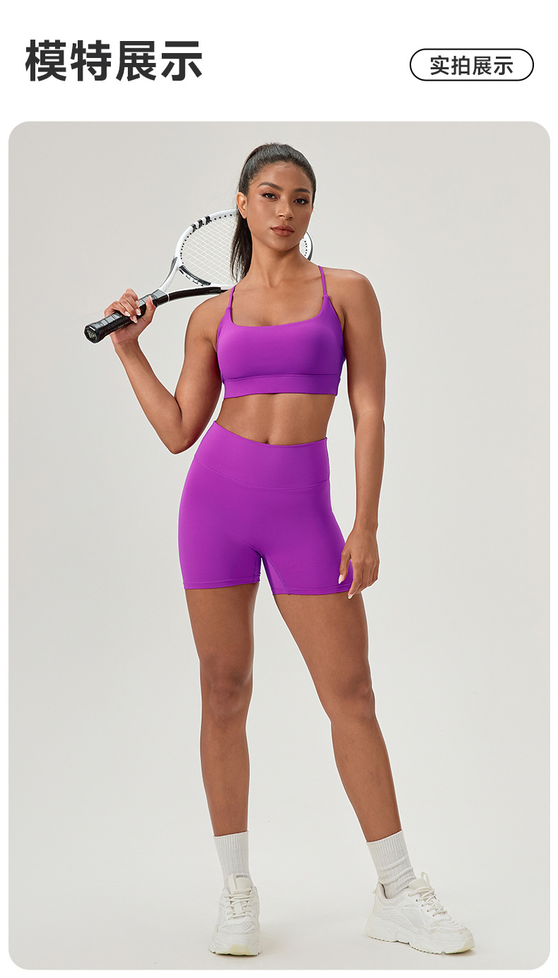 08/2024 Cross high waist yoga shorts tight nude peach hip sports shorts women's outdoor fitness pants 8843