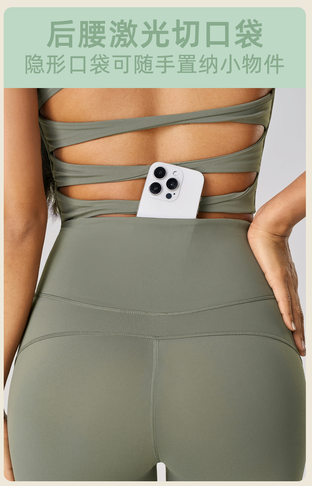 08/2024 TZ8843 link-1 Cross high waist sports suit women's contrast color backless tight nude yoga suit running fitness yoga clothes 8843