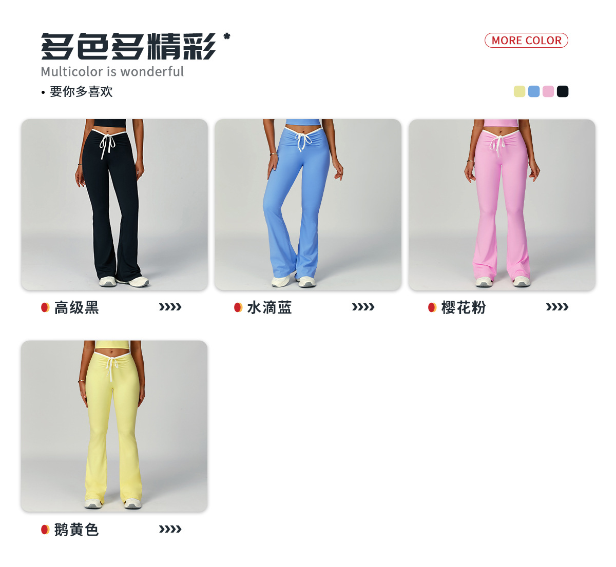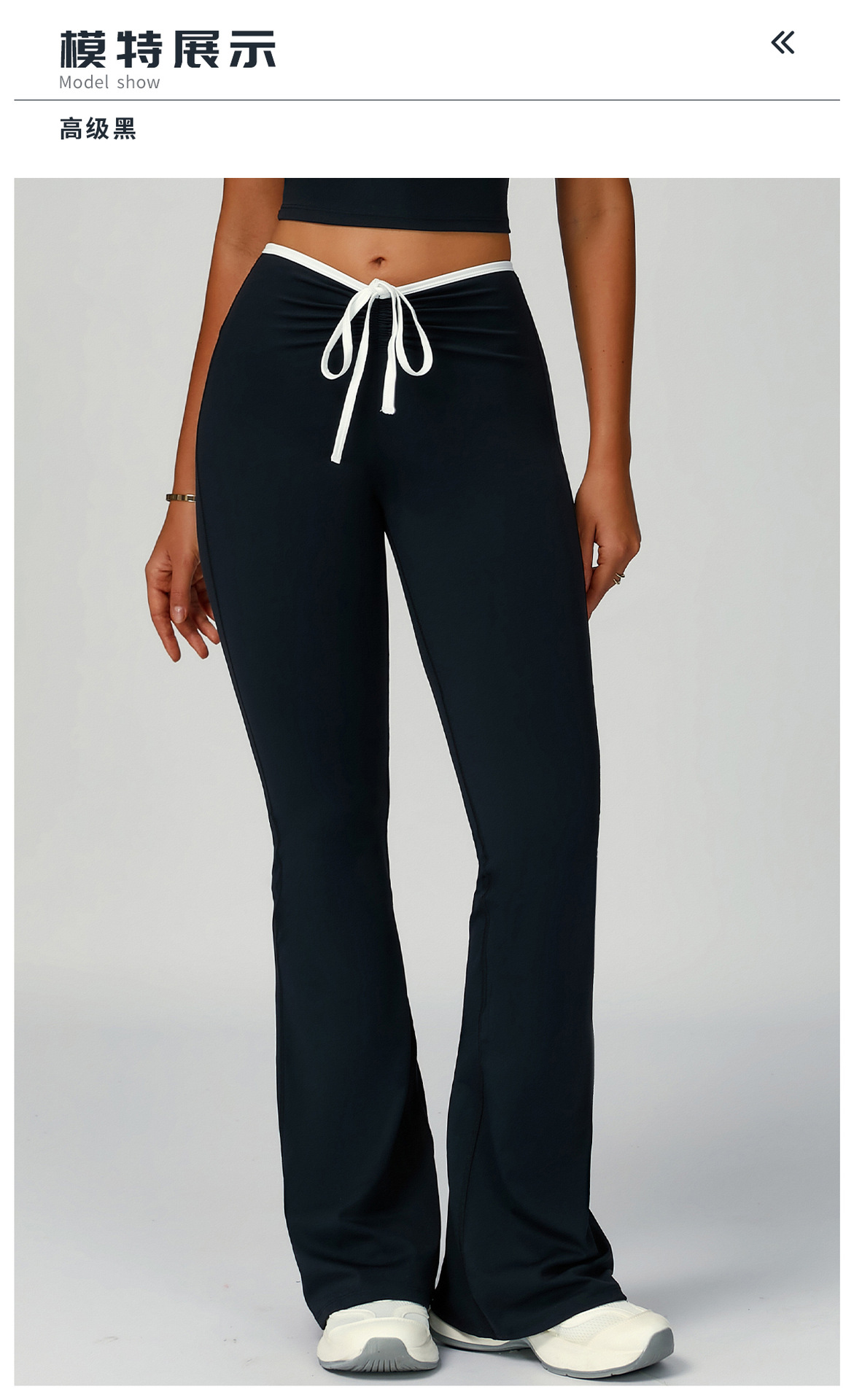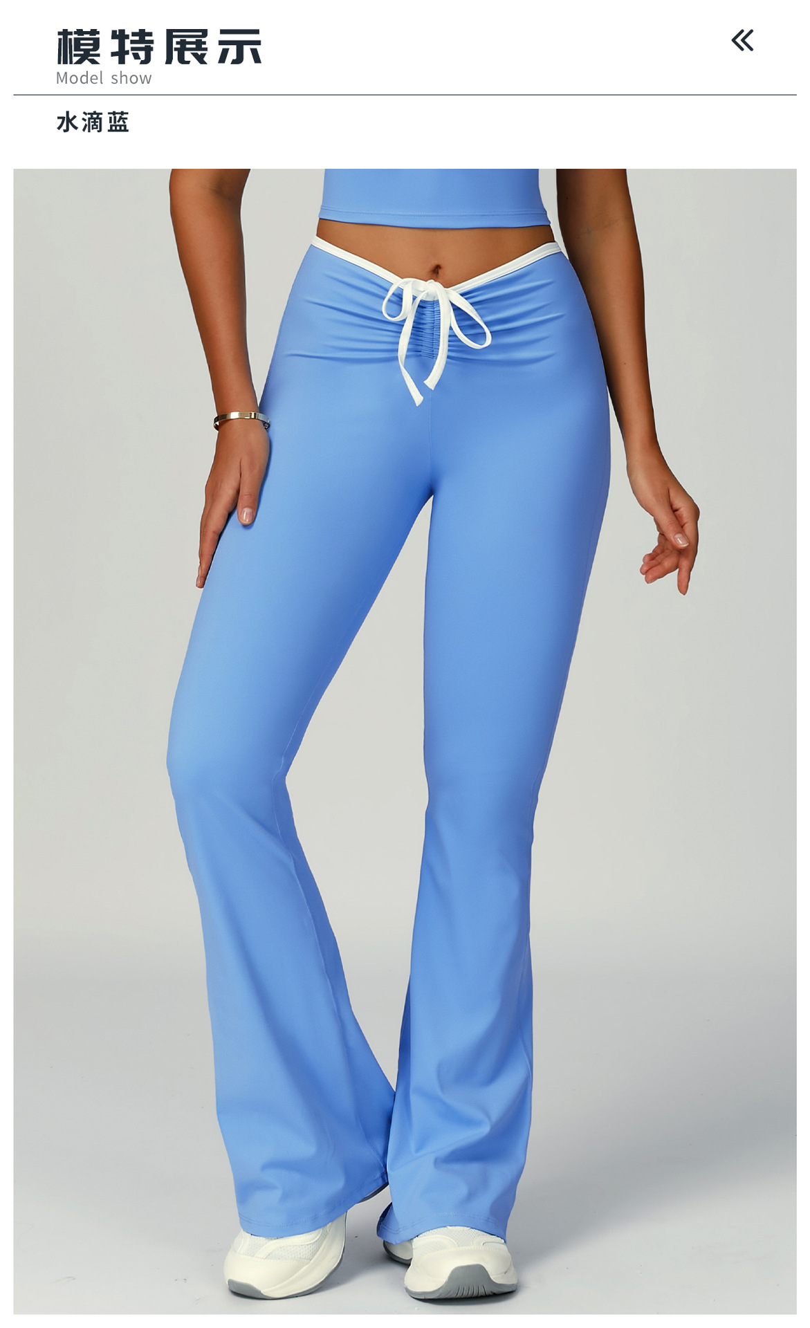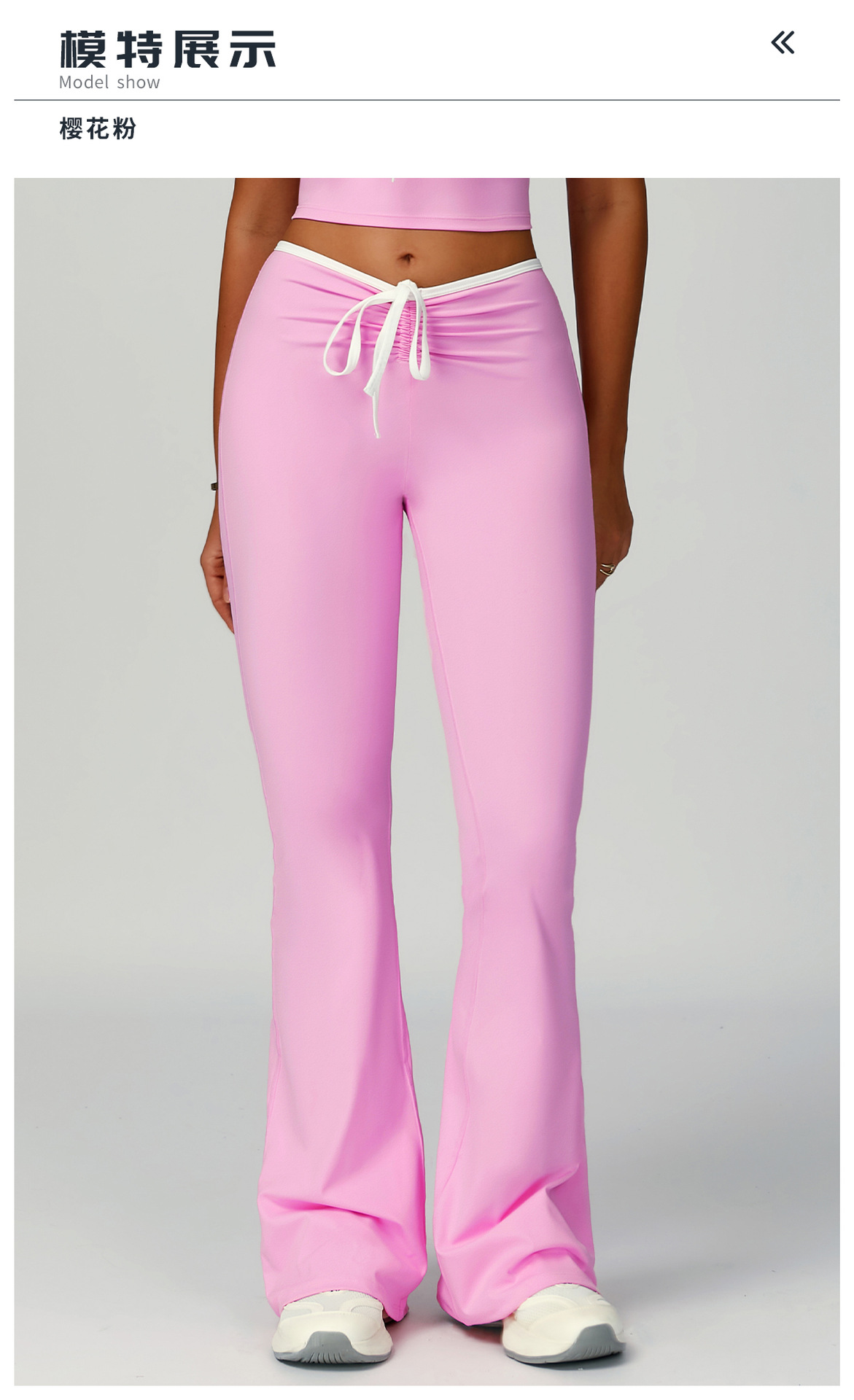 07/2025 Contrast color hemming flared pants yoga fitness sports flared pants high waist slim flared pants women high-end 2017