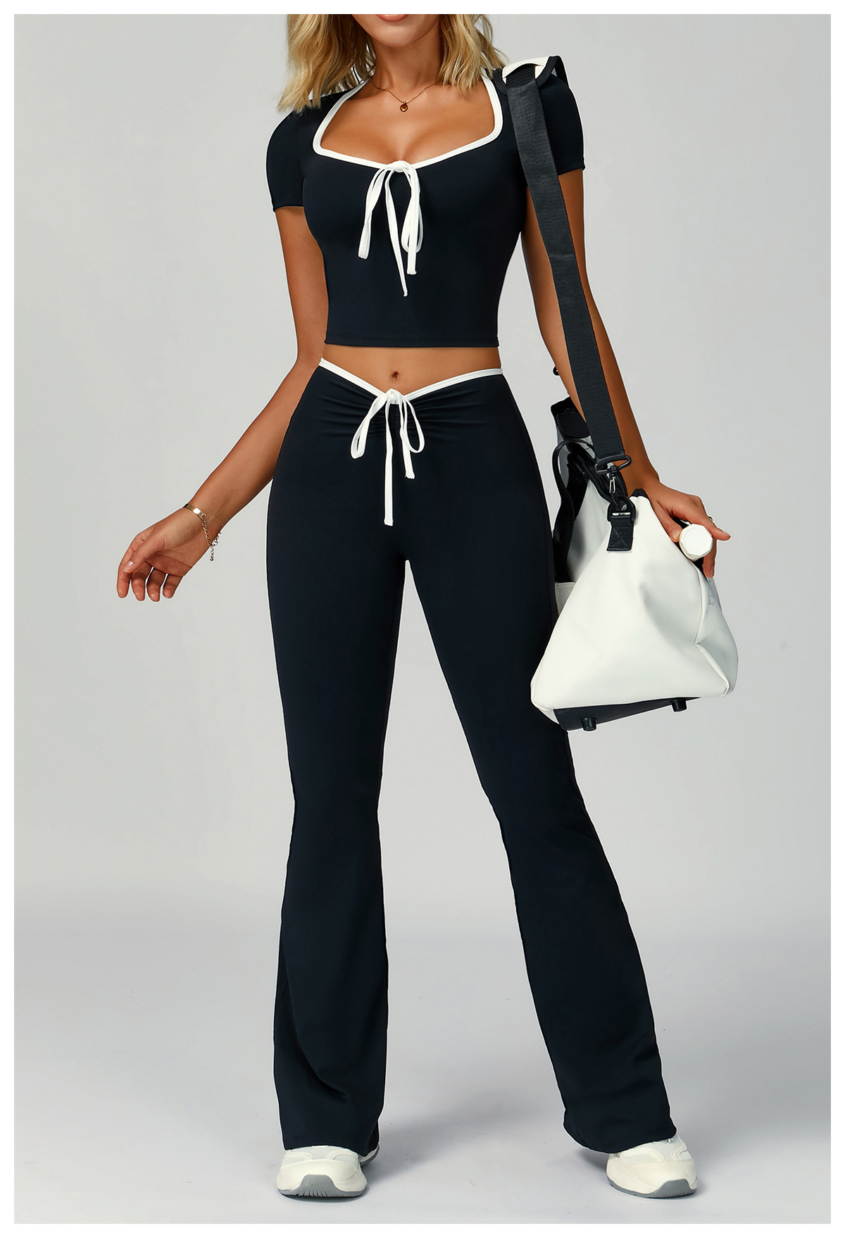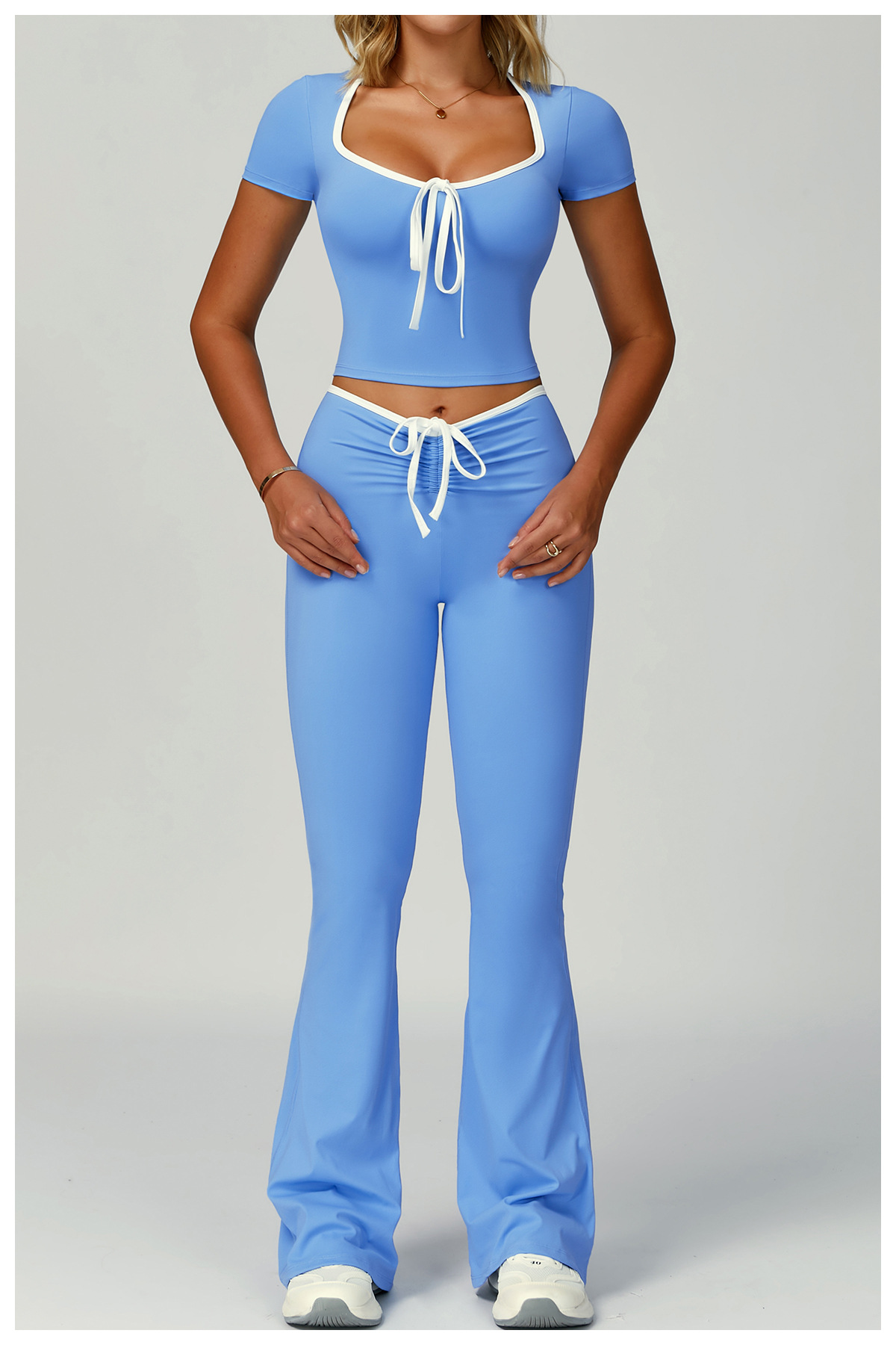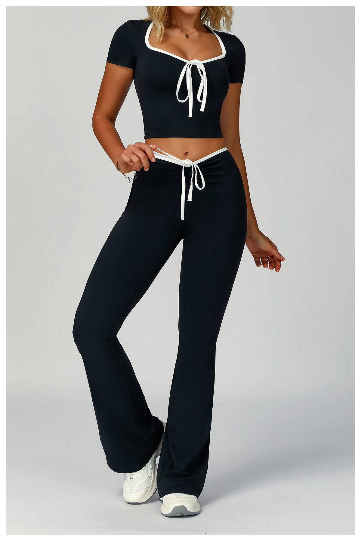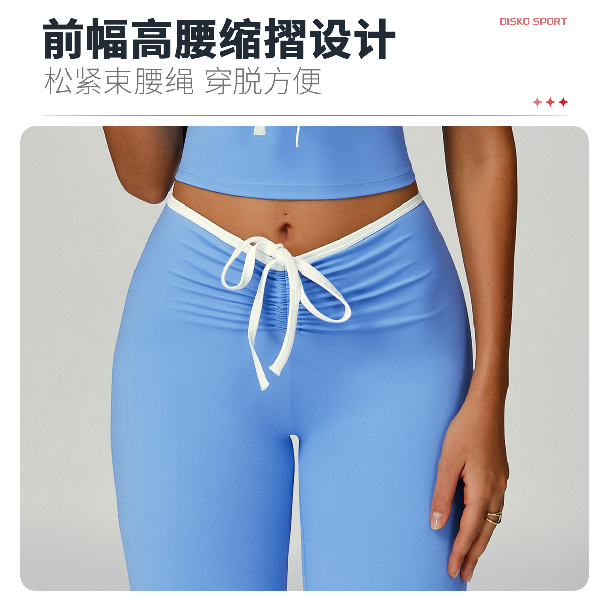 07/2025 Contrast color hemming flared pants yoga fitness sports flared pants high waist slim flared pants women high-end 2017