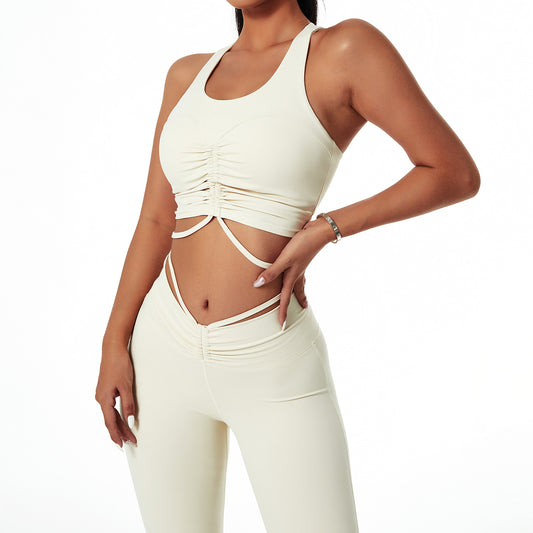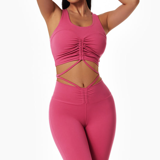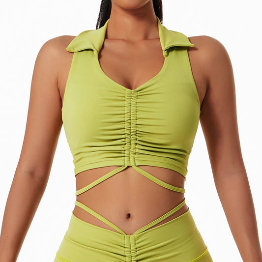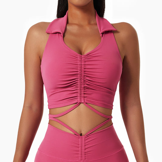 fitness sports bra underwear female ribbed hanging neck shock absorption gathered yoga vest