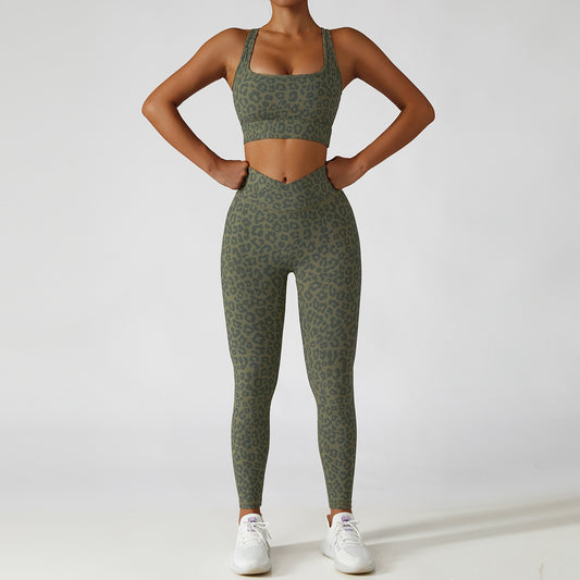 yoga clothing suit camouflage leopard sports tights hip lift fitness suit female 6398