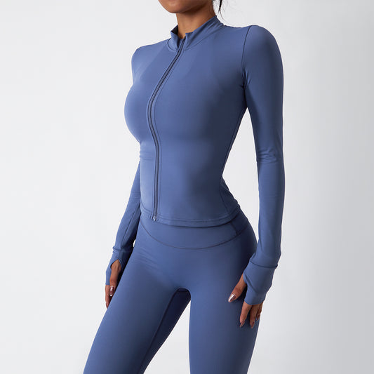 08/2022 Breathable quick-drying long-sleeved yoga clothes women's nude fitness jacket training outer zipper tight running sports top 6116