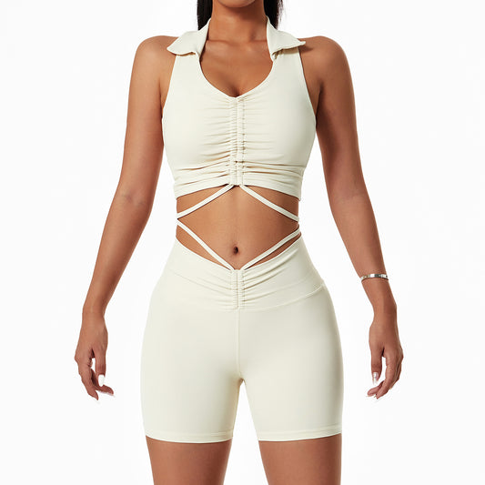 Yoga Clothing Suit Women's Fashion Gym Net Red Drawstring Lapel Sports Fitness Clothes 6447