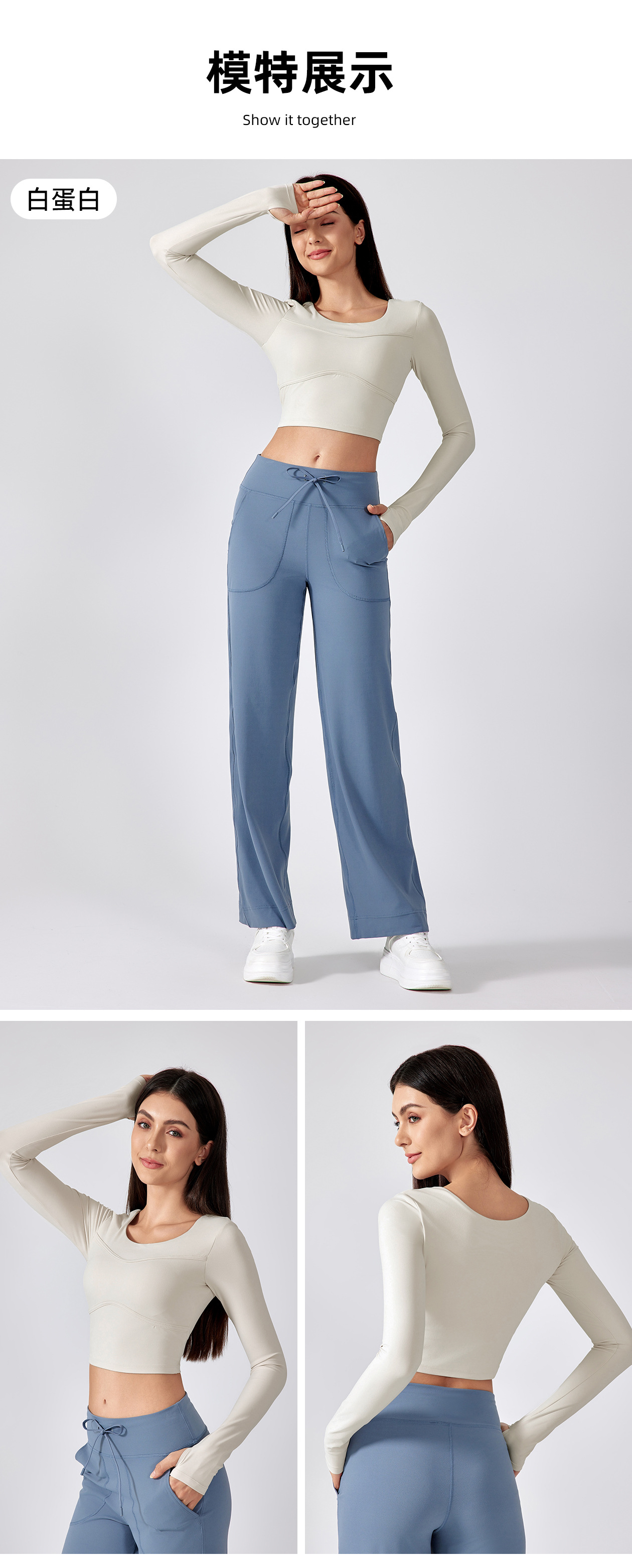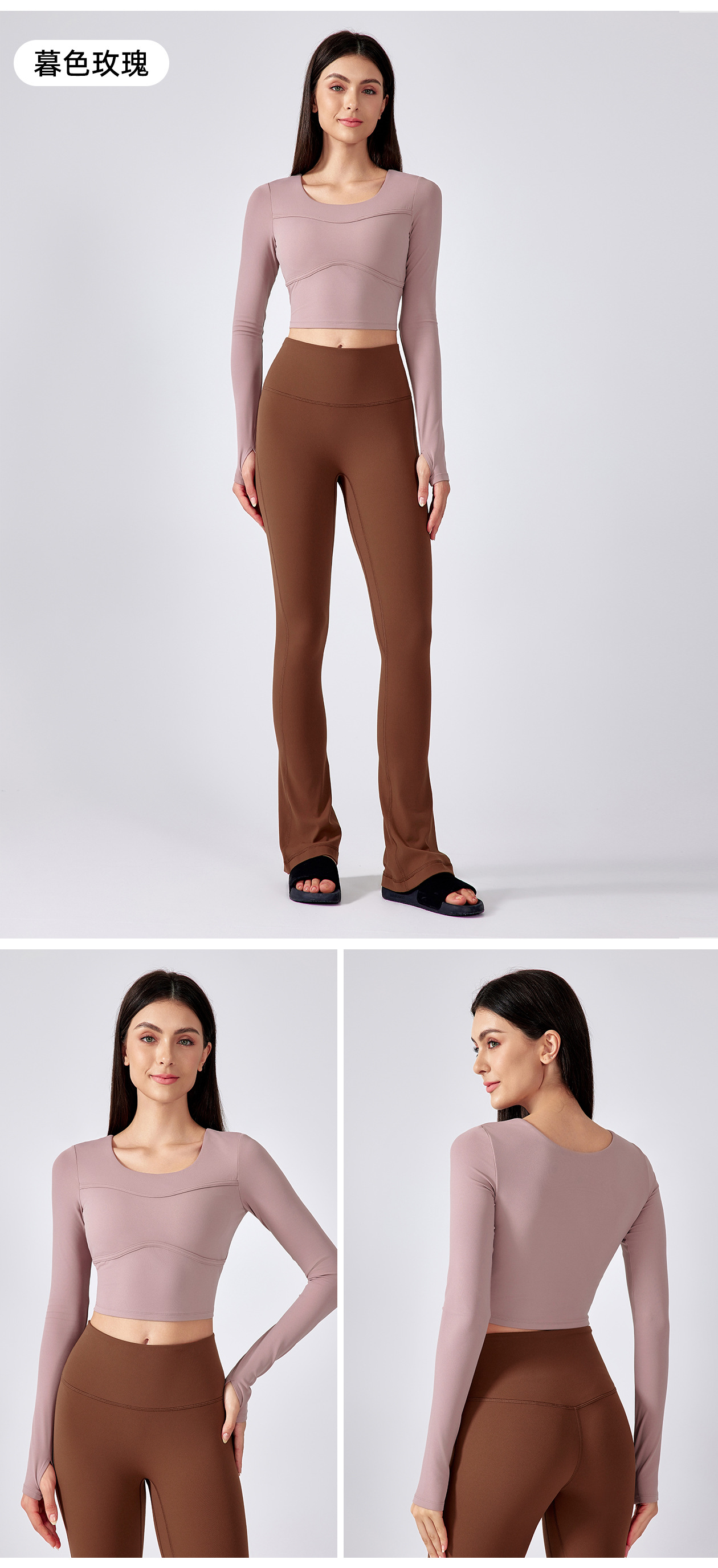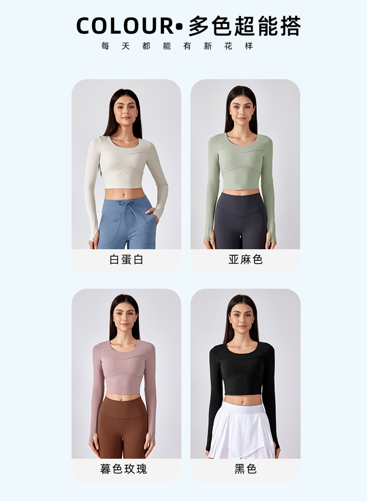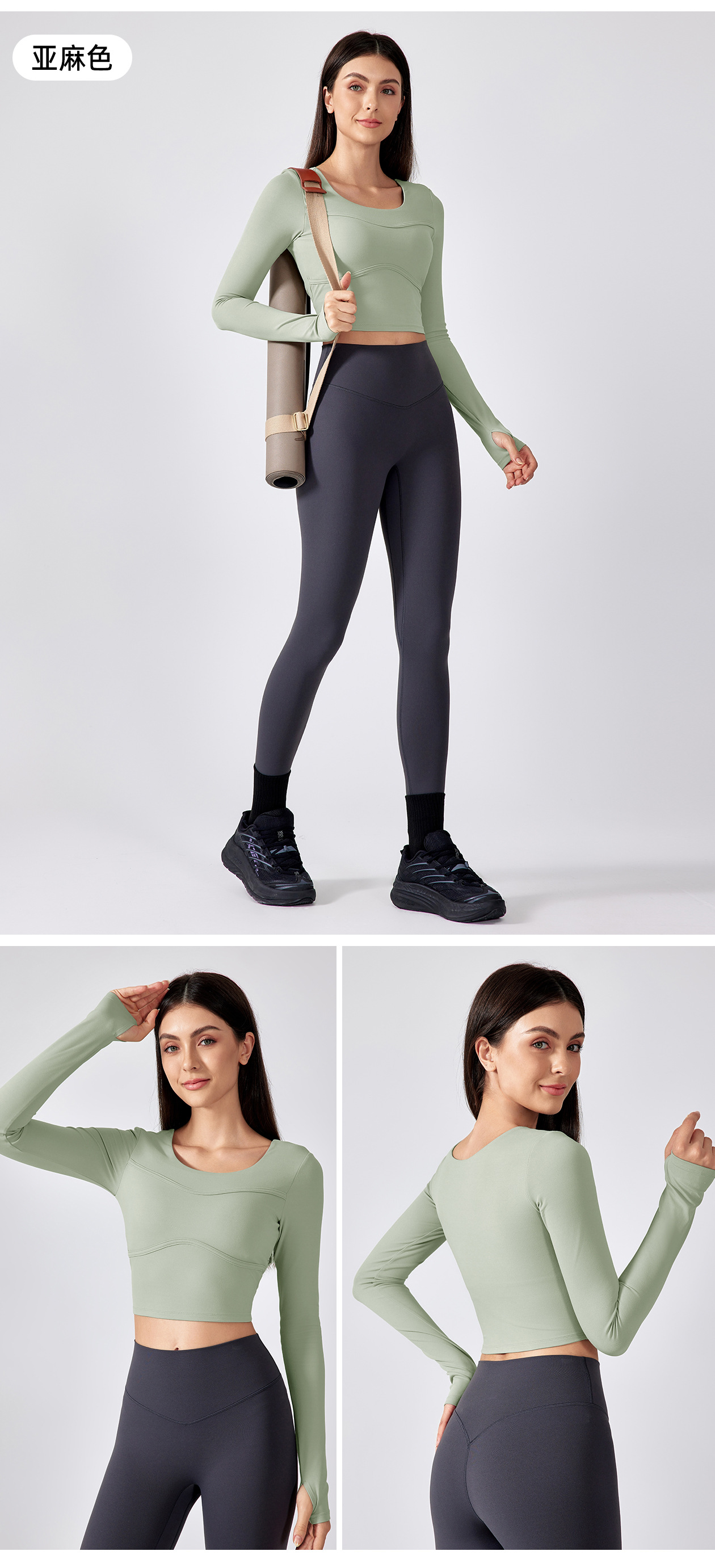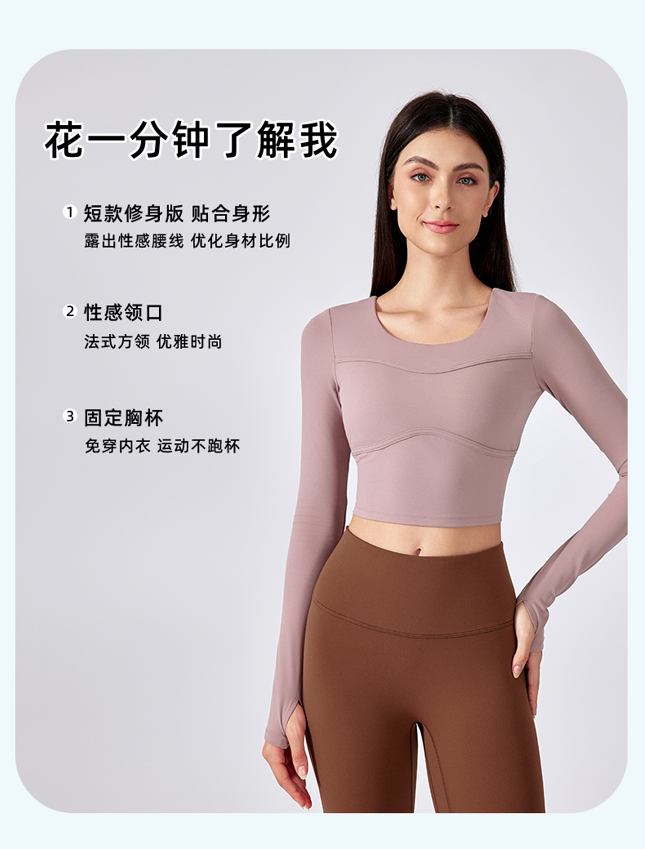 09/2024 Short yoga clothes with chest pads, long sleeves, autumn new style, nude feeling, slimming and shaping fitness sports tops for women DAW201