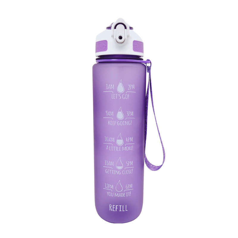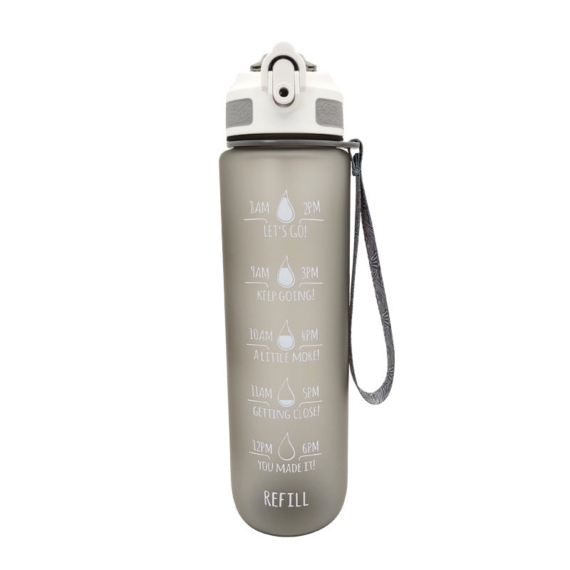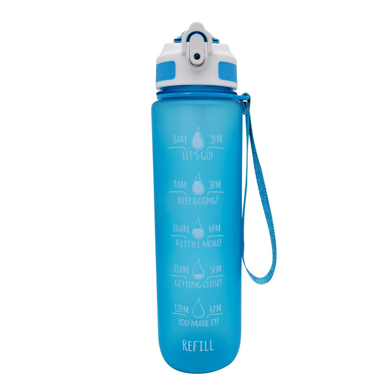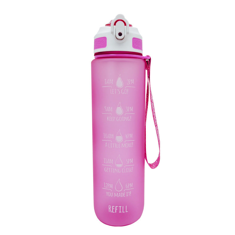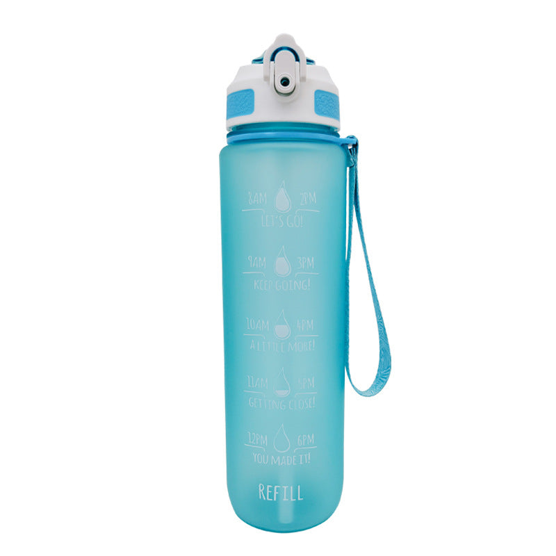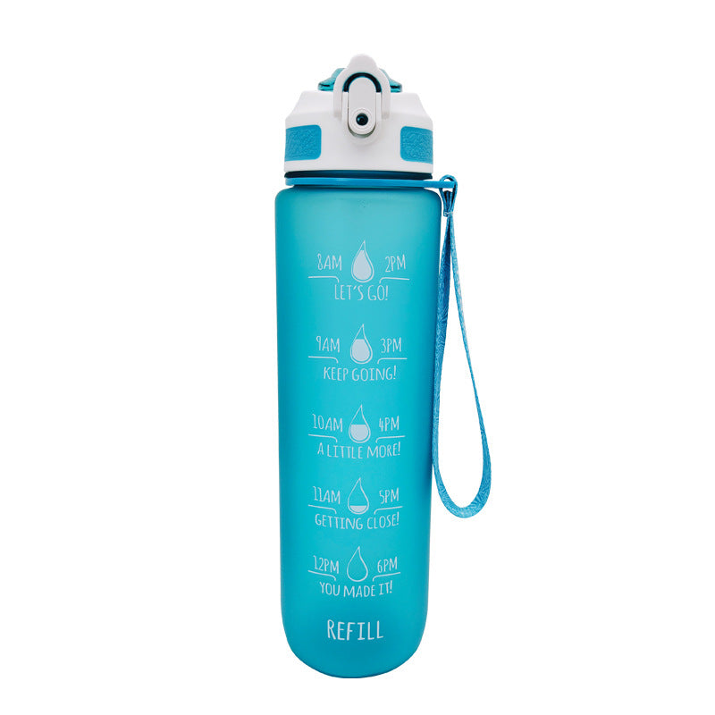 1L plastic water cup with time scale and motivational language portable outdoor water cup with straw spray paint fitness water cup