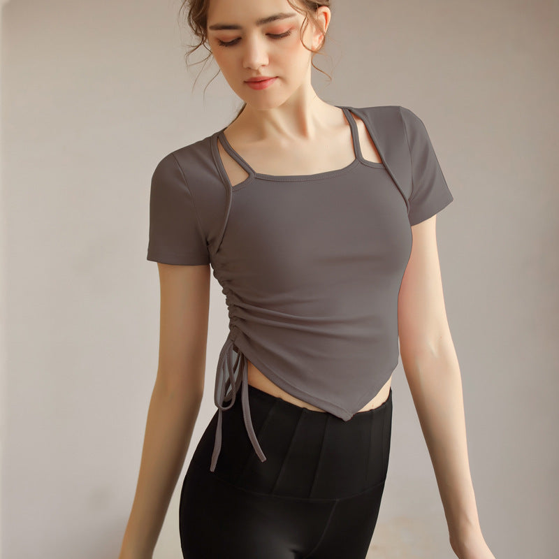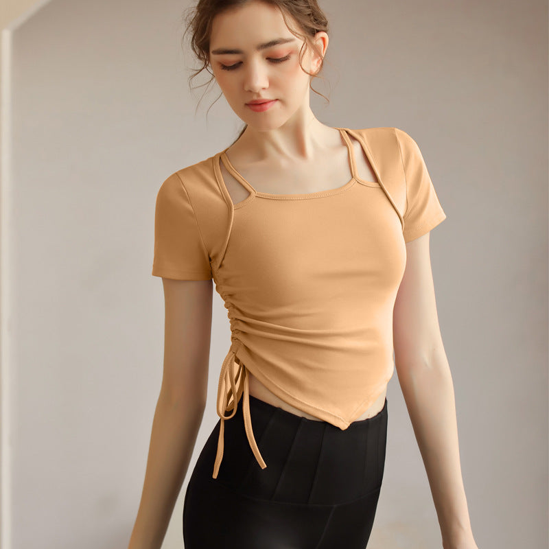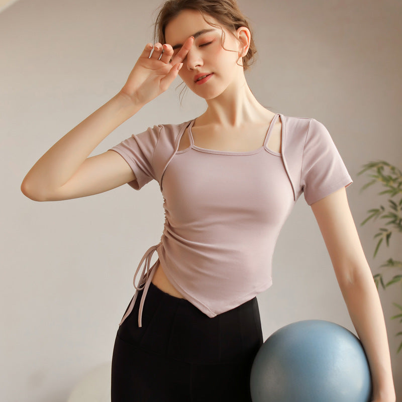 2022 new yoga clothes short-sleeved drawstring body outdoor summer fitness tops fashion sports yoga clothes women