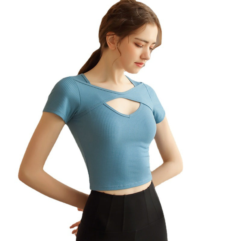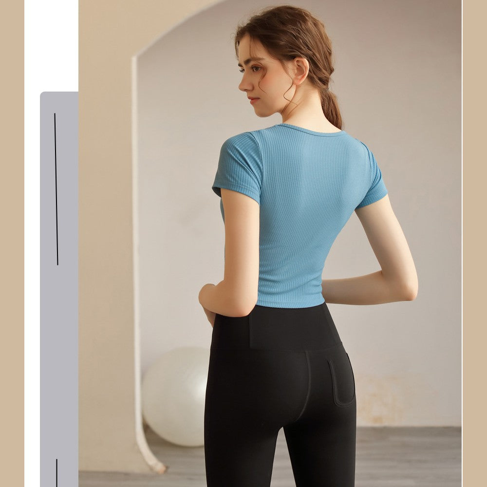 2022 new yoga clothes short-sleeved navel-baring running sports top women's quick-drying nude fitness short-sleeved t-shirt