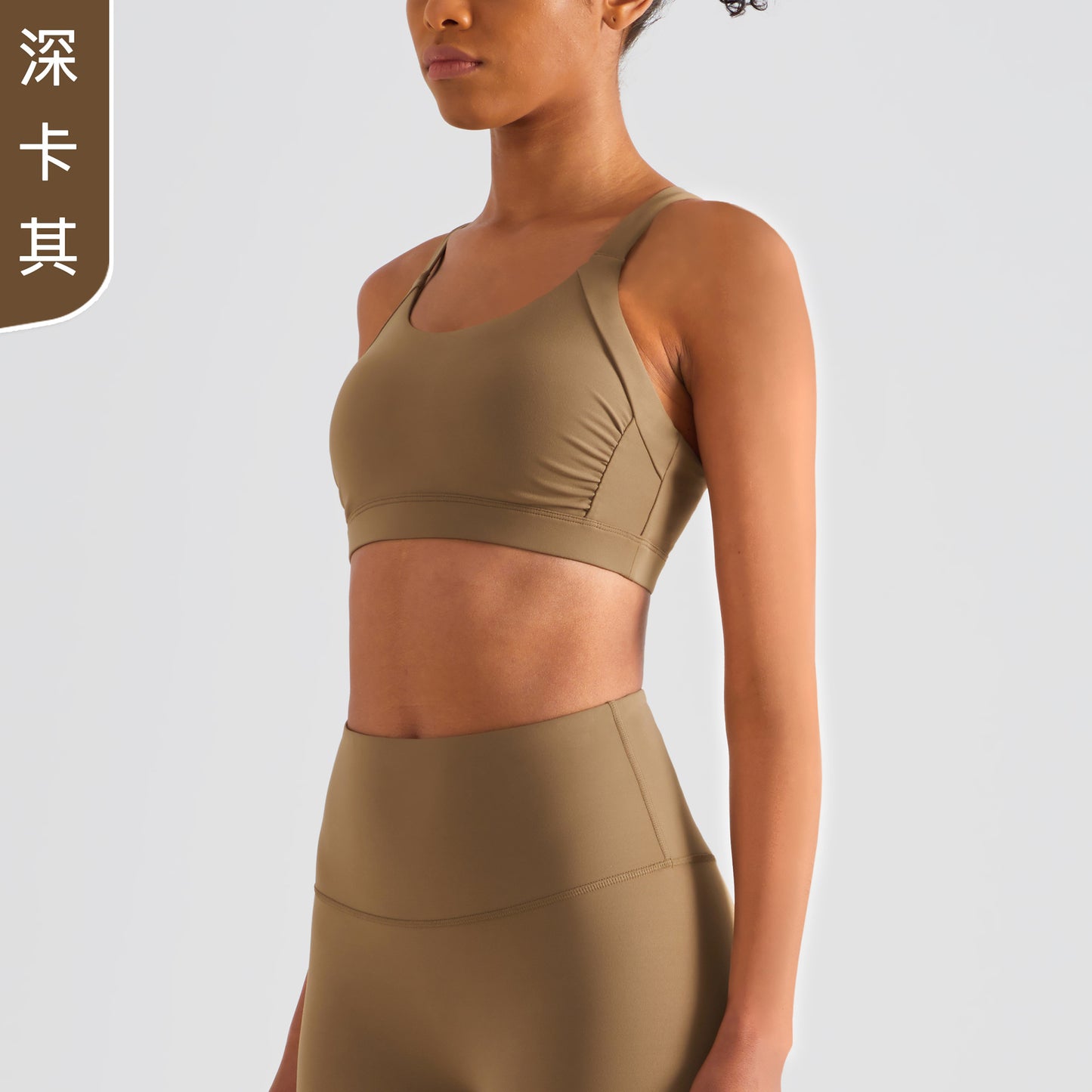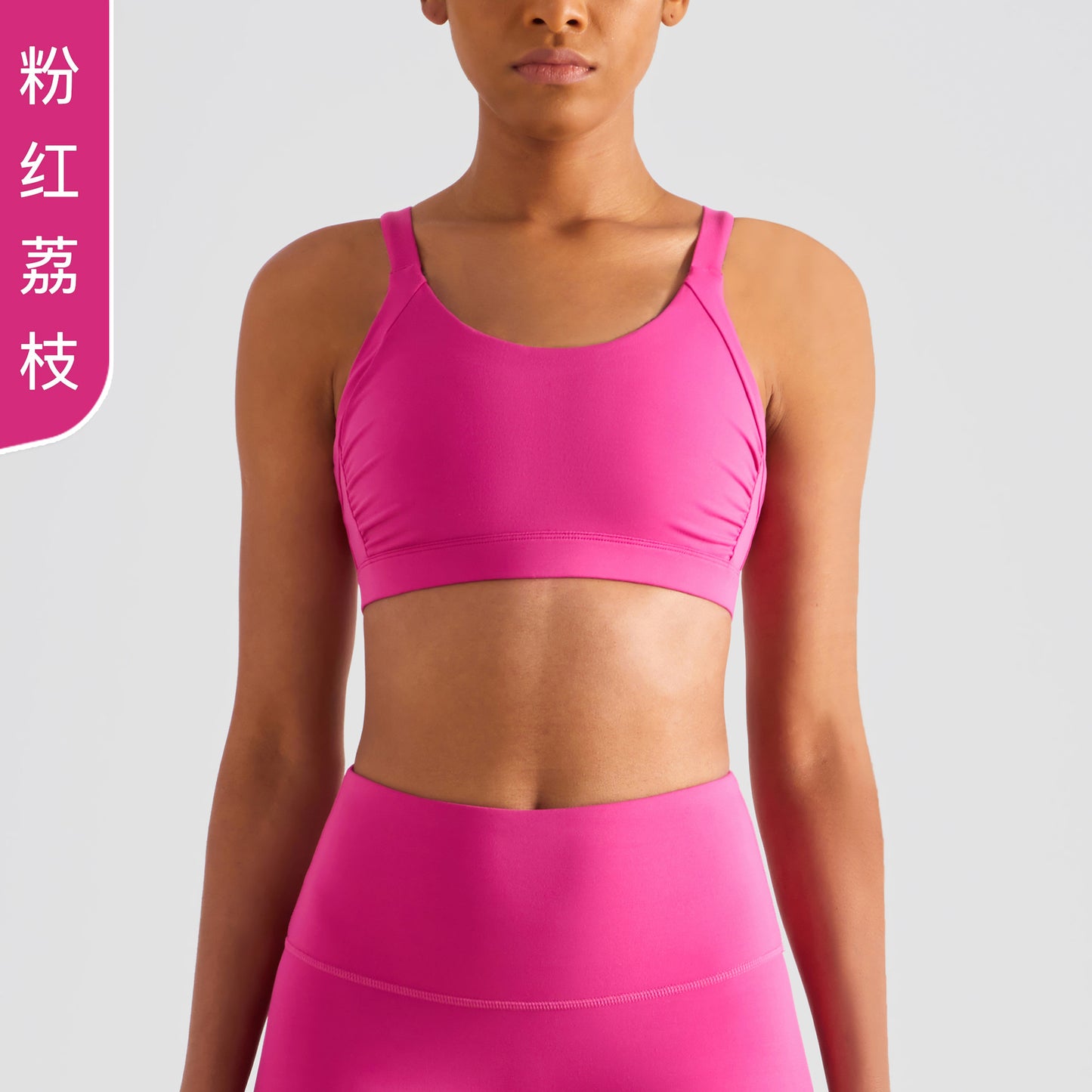 2022 new triangle beauty back fitness sports bra thin shoulder straps gathered nude yoga bra