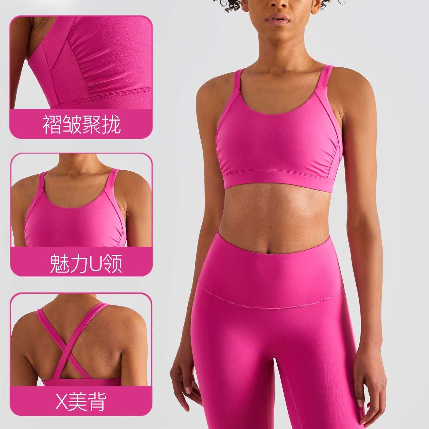 2022 spring and summer new pleated gathered sports bra high-strength shock-proof running cross beautiful back yoga bra