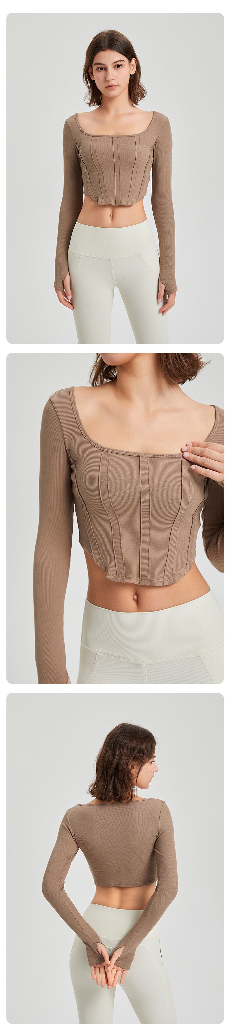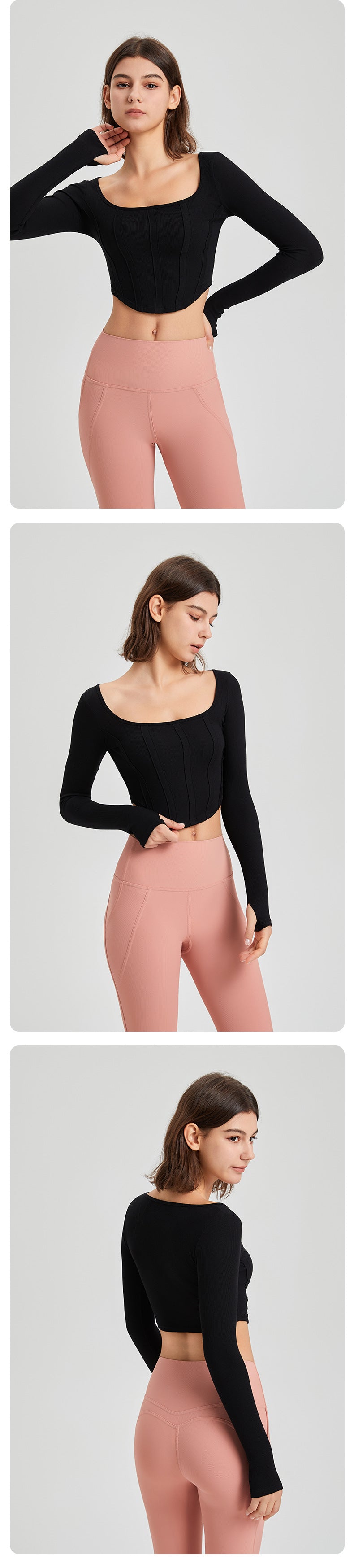 2023.08 Sports top women's tight-fitting sexy Youkesi thin yoga clothing quick-drying T-shirt net red running fitness clothing long-sleeved