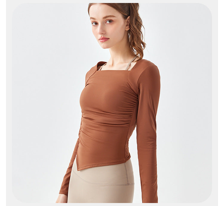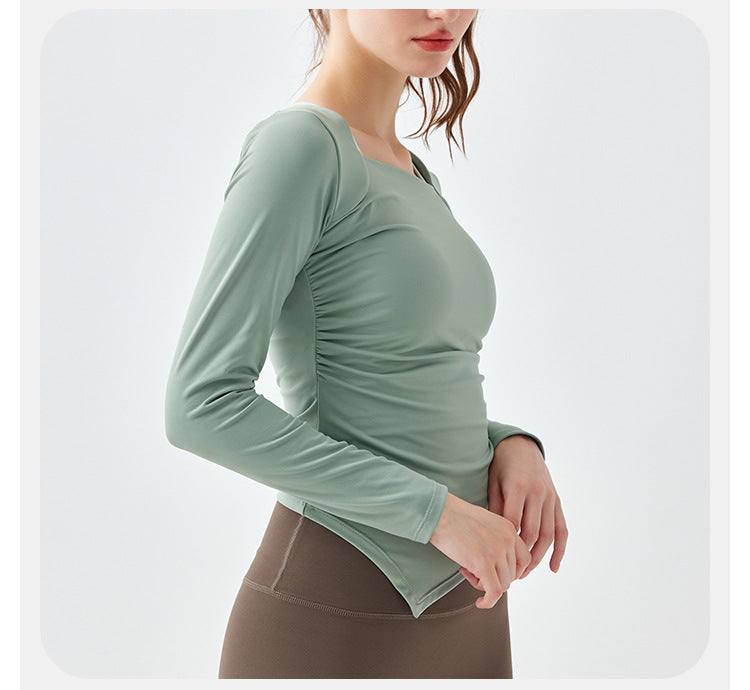 10/2023 sports yoga long-sleeved women's tight-fitting autumn and winter naked sense folds fashion quick-drying Pilates fitness training top