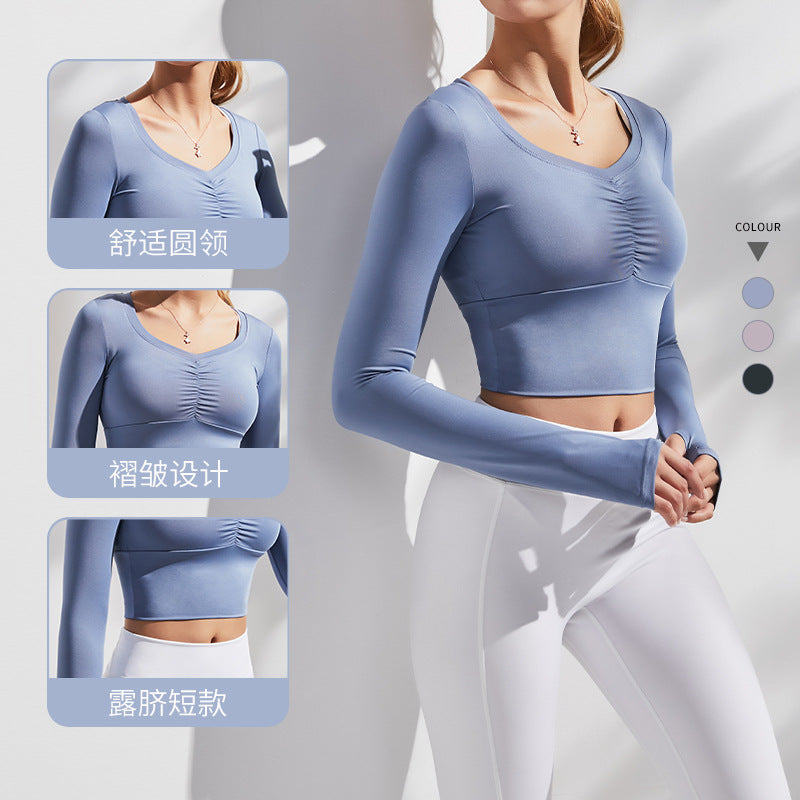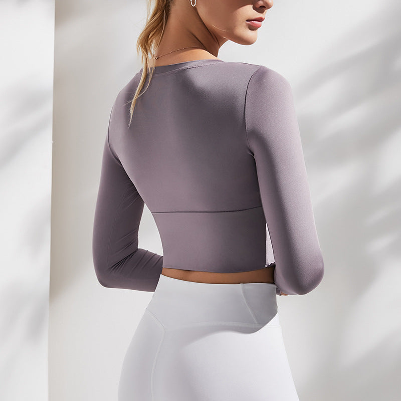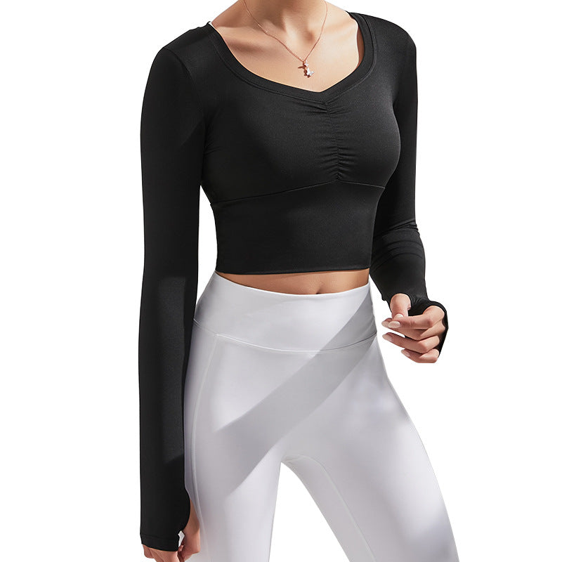Big V-neck sexy tight-fitting quick-drying yoga clothes women's long-sleeved chest sportswear running fitness clothes women