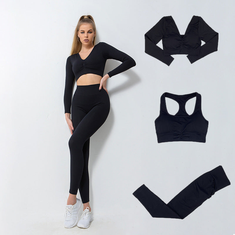Cross-border autumn and winter new yoga clothing suit three-piece seamless knitted long-sleeved sports suit beautiful back fitness suit