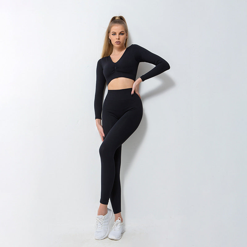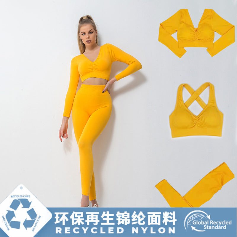 Environmentally friendly new yoga suit three-piece seamless knitted long-sleeved sports suit beauty back fitness suit