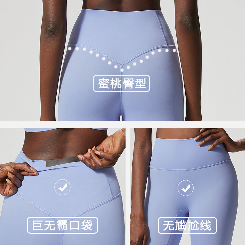 2024 new colors 2022 spring and summer new high waist shorts nude T-line yoga pants women's European and American peach hip lift three-point fitness pants