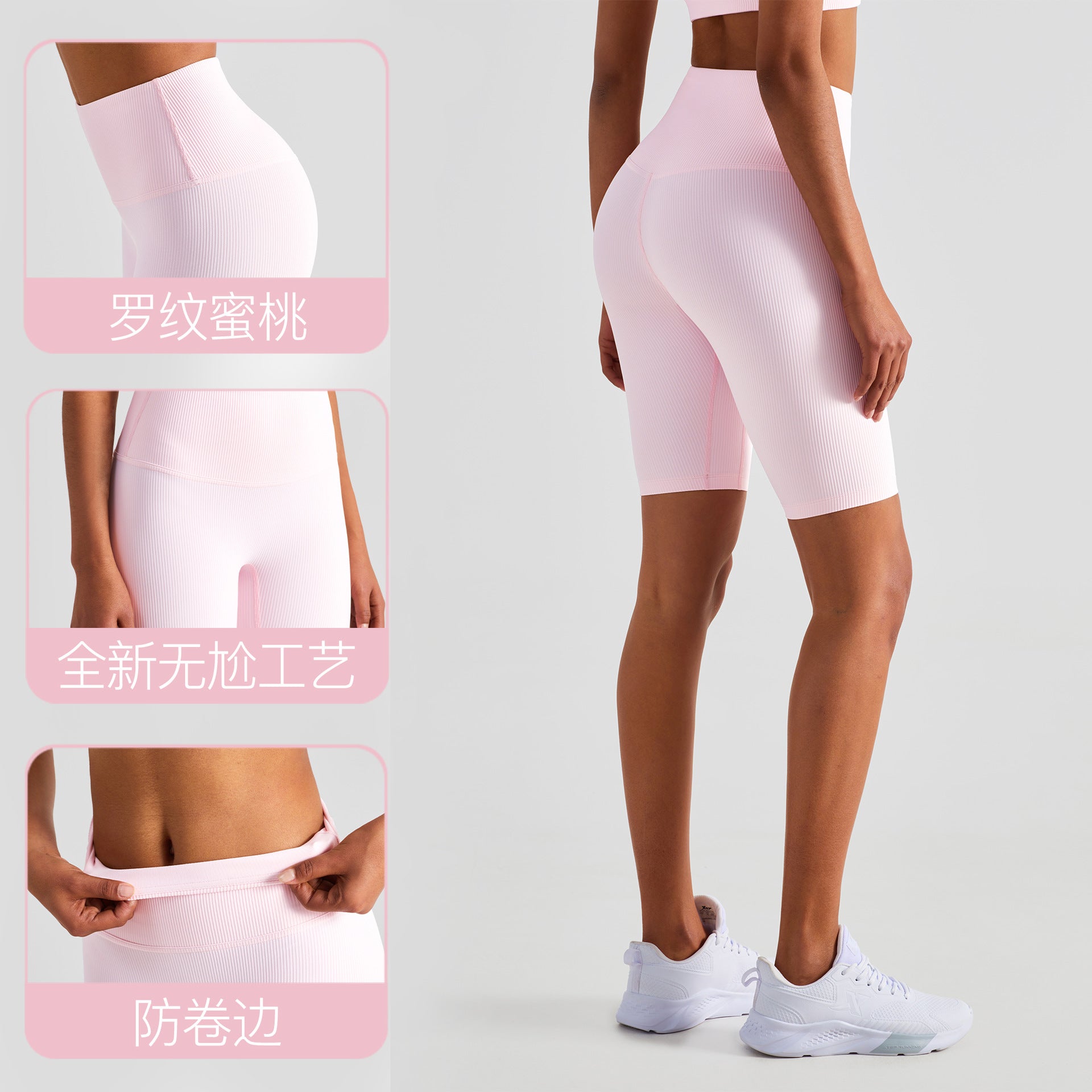 2024 new colors 2022 spring and summer new high waist shorts nude T-line yoga pants women's European and American peach hip lift three-point fitness pants