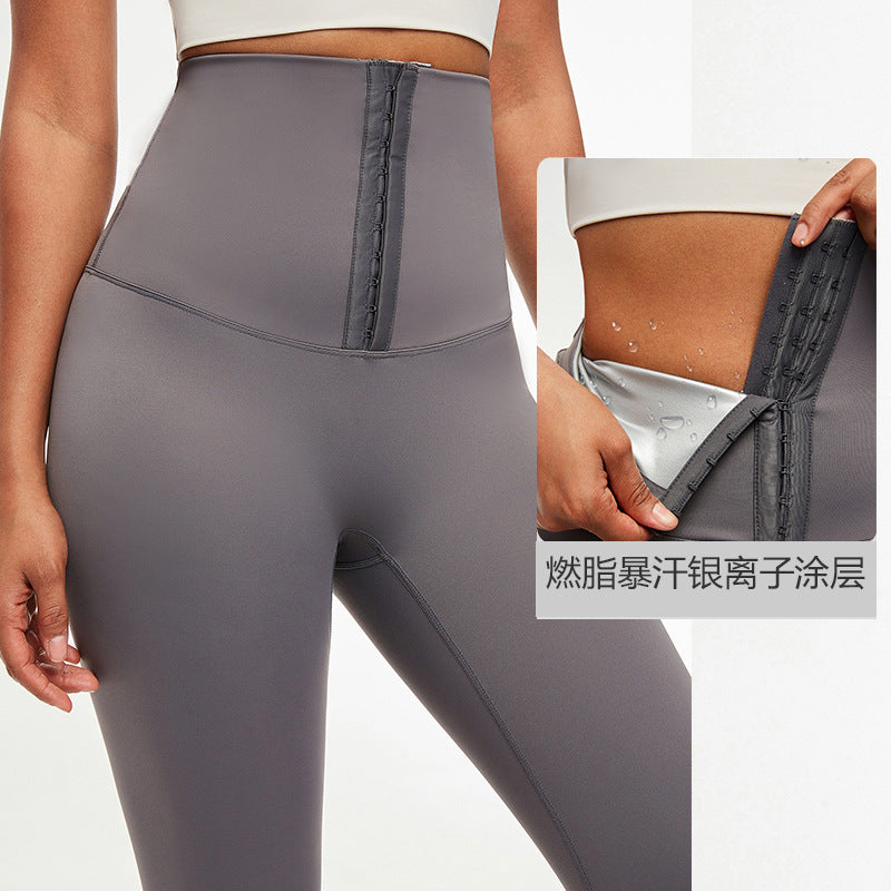 Cross-border sweating waist yoga pants women's nude sexy sports fitness pants silver ion coating sweating tights