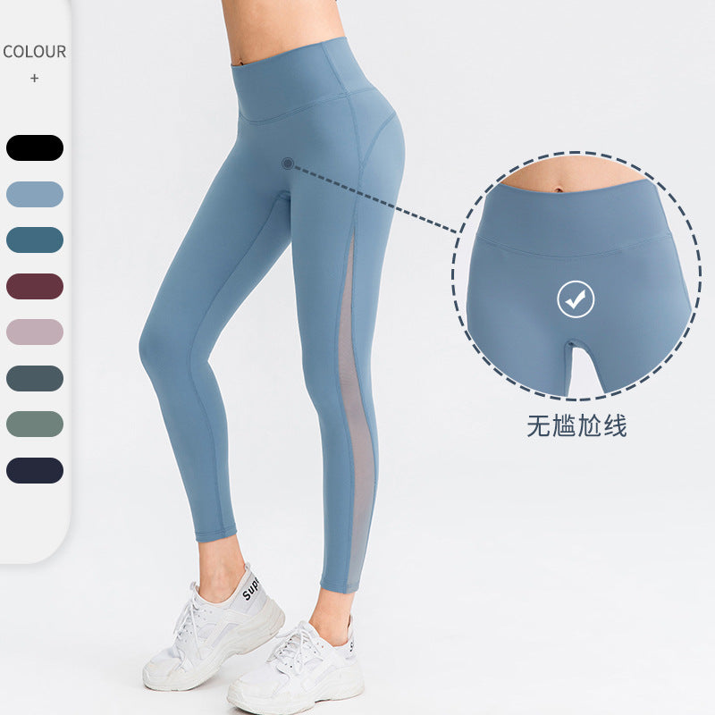 Desire yoga pants women's brocade double-sided nude feeling no embarrassment line tight-fitting high-waist hip-lifting sports fitness trousers 02337