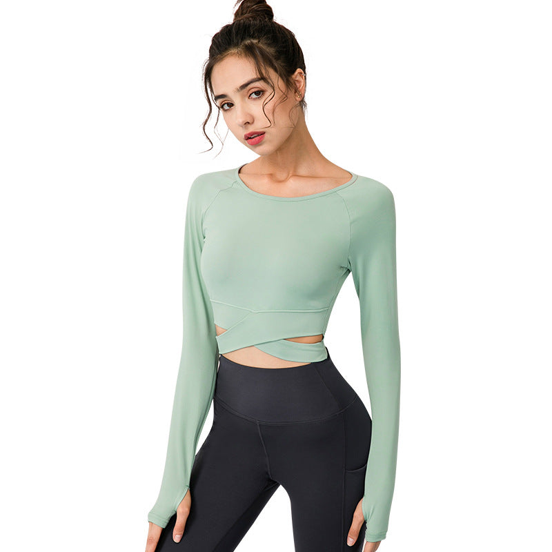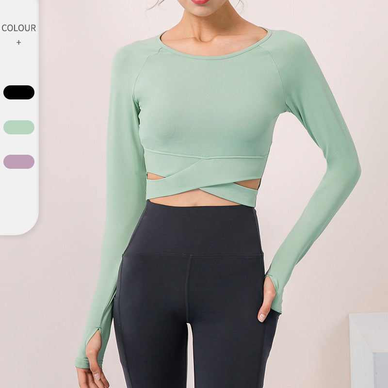 New autumn and winter yoga clothes long-sleeved women's slim sports running fitness clothes with chest pad elastic tights 02516