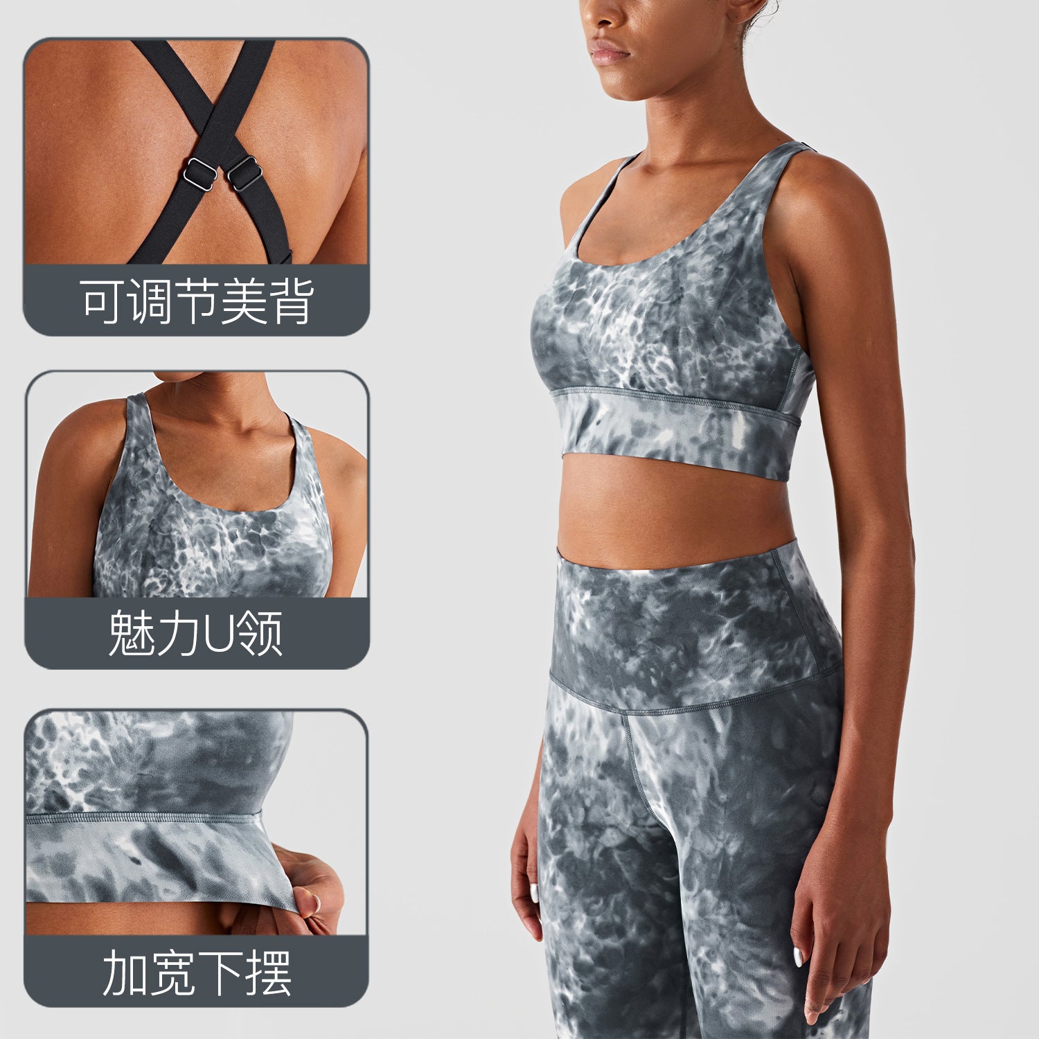 New cross-border ink inlay dyeing tie-dye adjustable yoga bra Europe and the United States high-end fitness training sports underwear