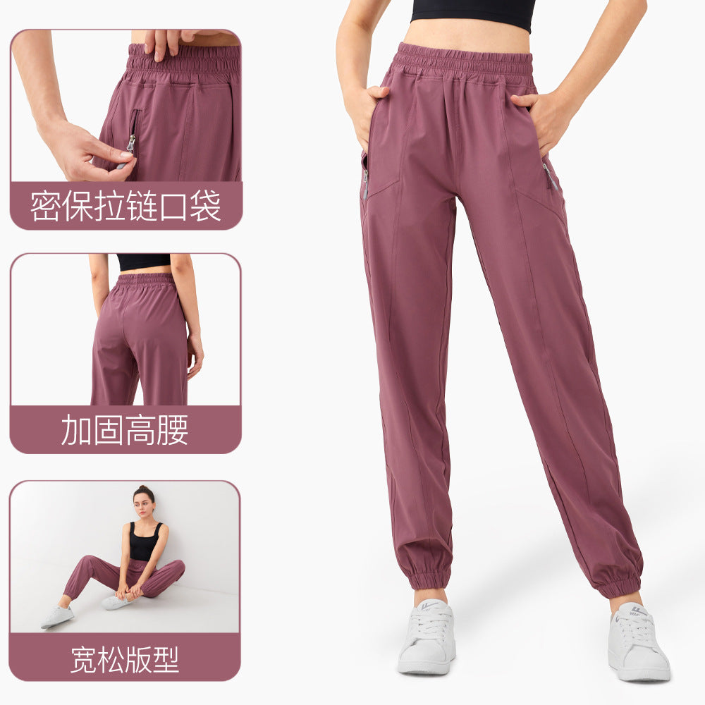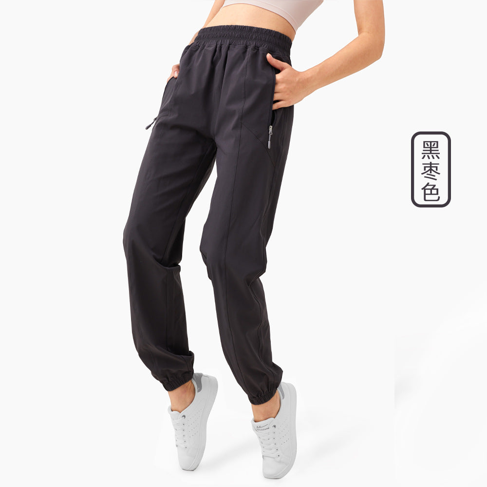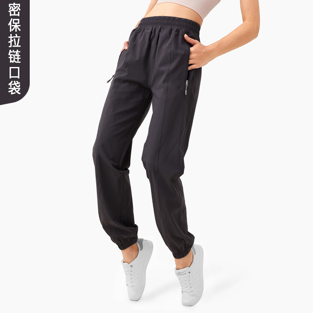 New cross-border loose sports pants women European and American zipper pocket casual fitness running high waist fitness pants fouregg