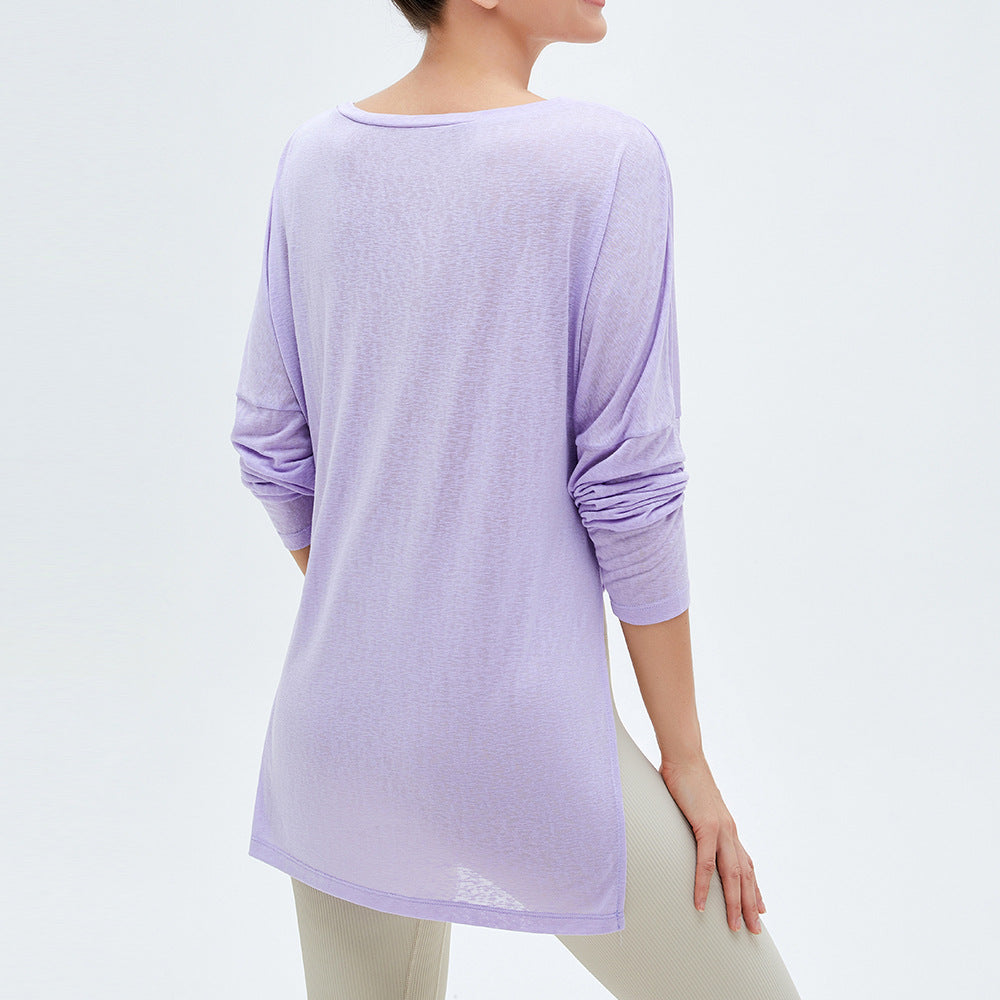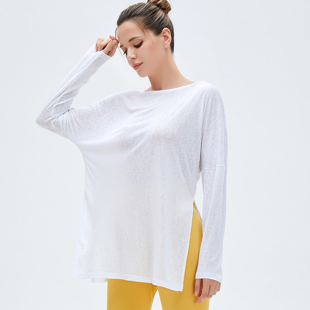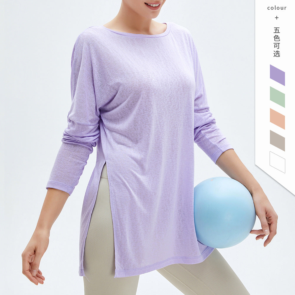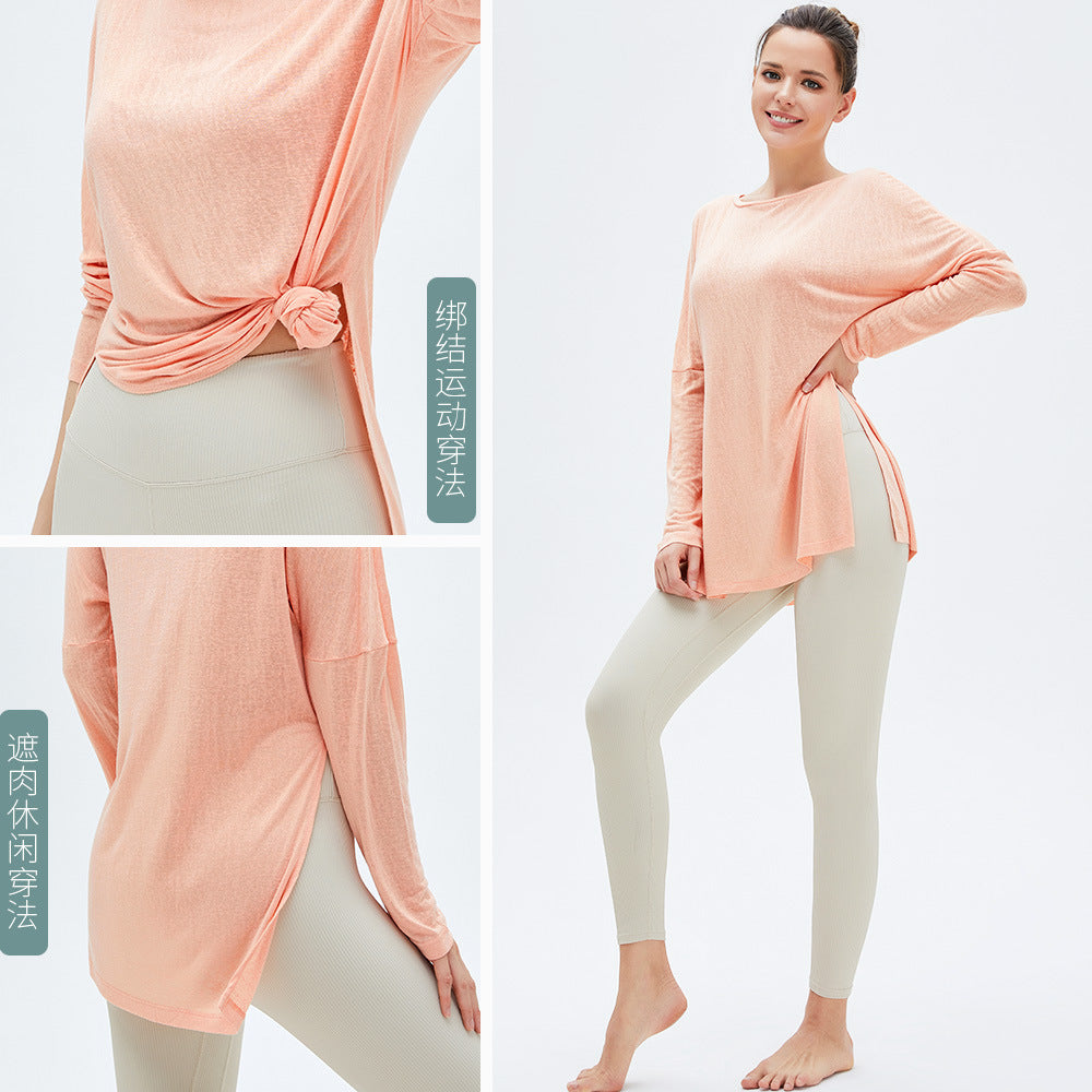 new double-sided split sweatshirt women's loose and fashionable yoga wear long sports top