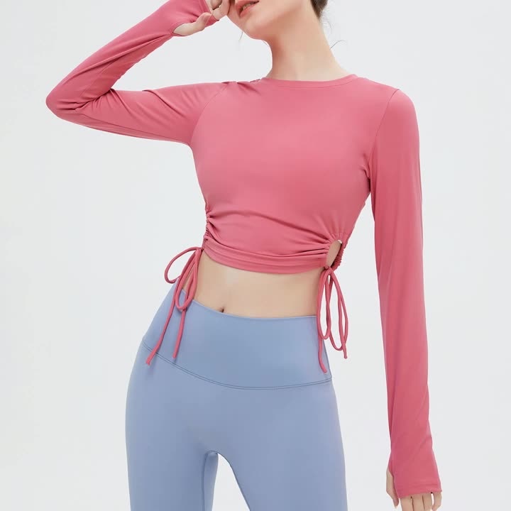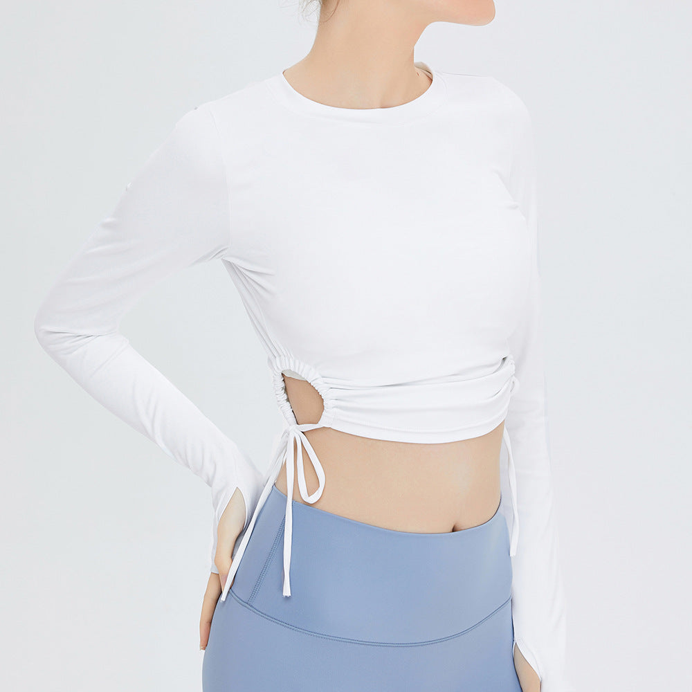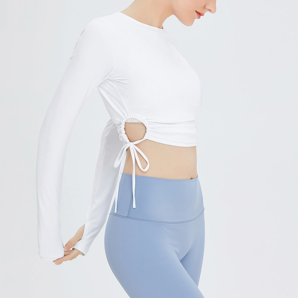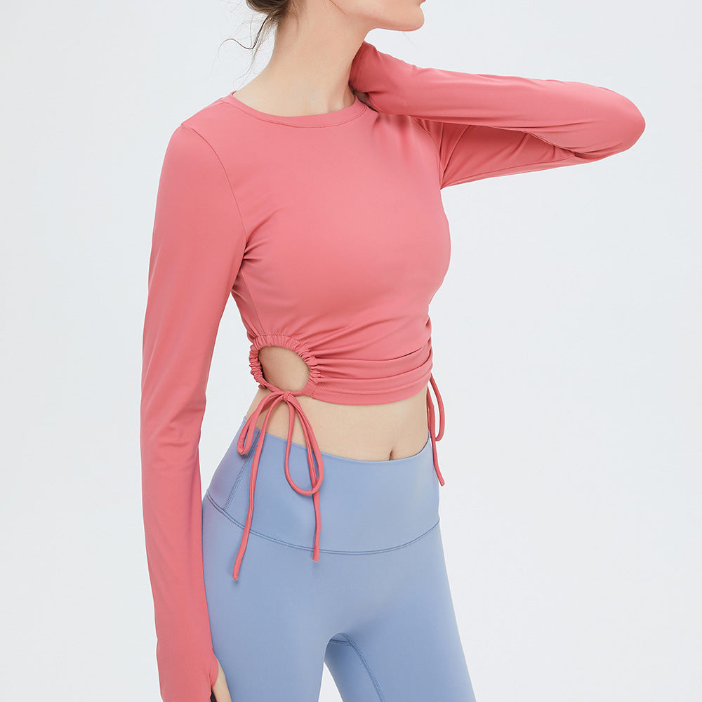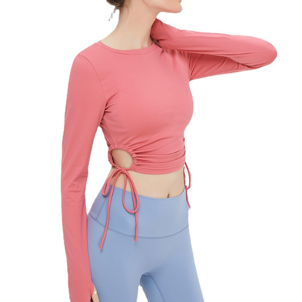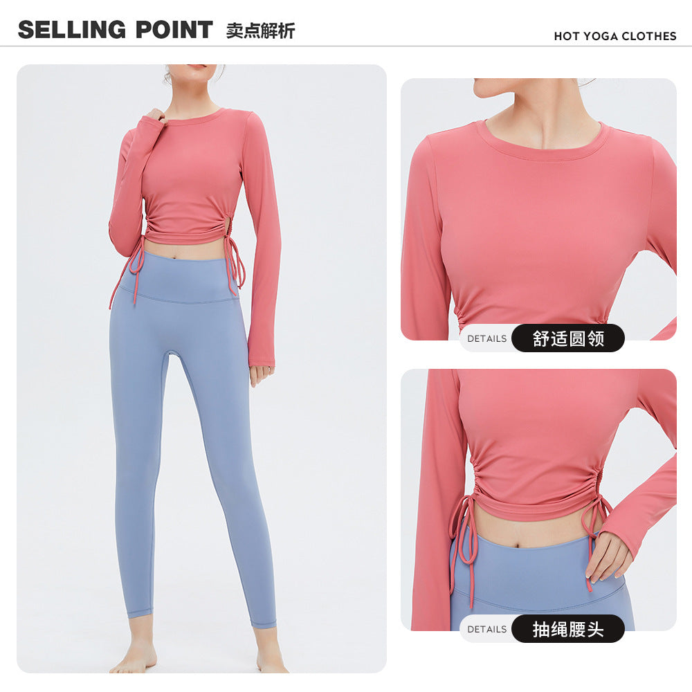 New spot nude yoga clothes women's long-sleeved navel slim nude sports fitness tops