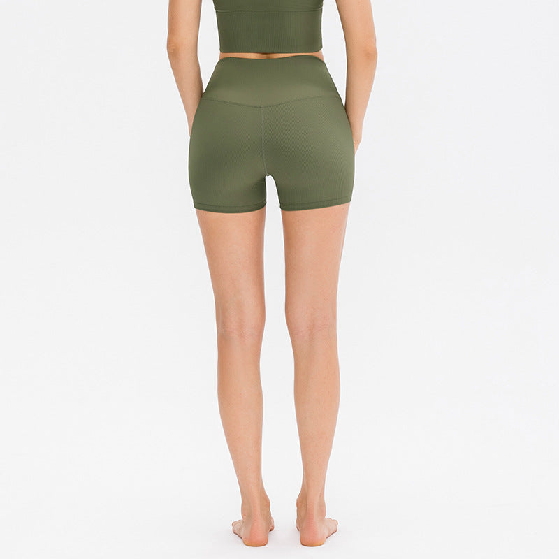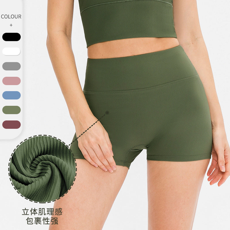 2024 new colors 2022 spring and summer new high waist shorts nude T-line yoga pants women's European and American peach hip lift three-point fitness pants
