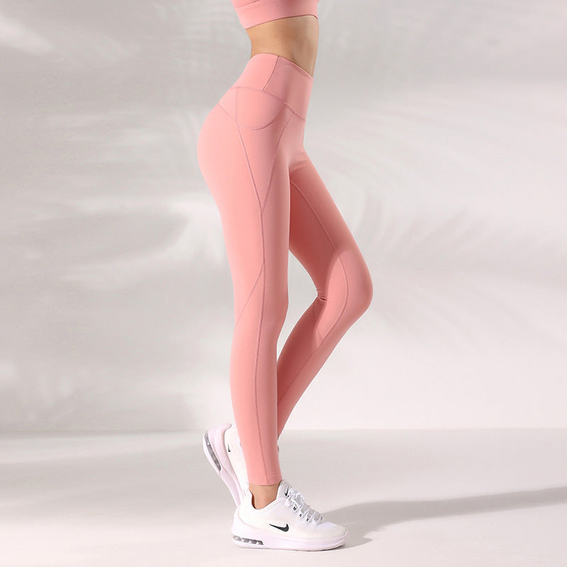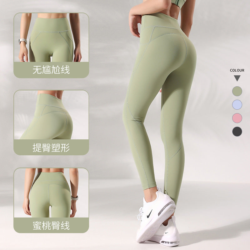 New summer yoga pants nude women no embarrassing line high waist sports tights European and American peach hip lift fitness pants