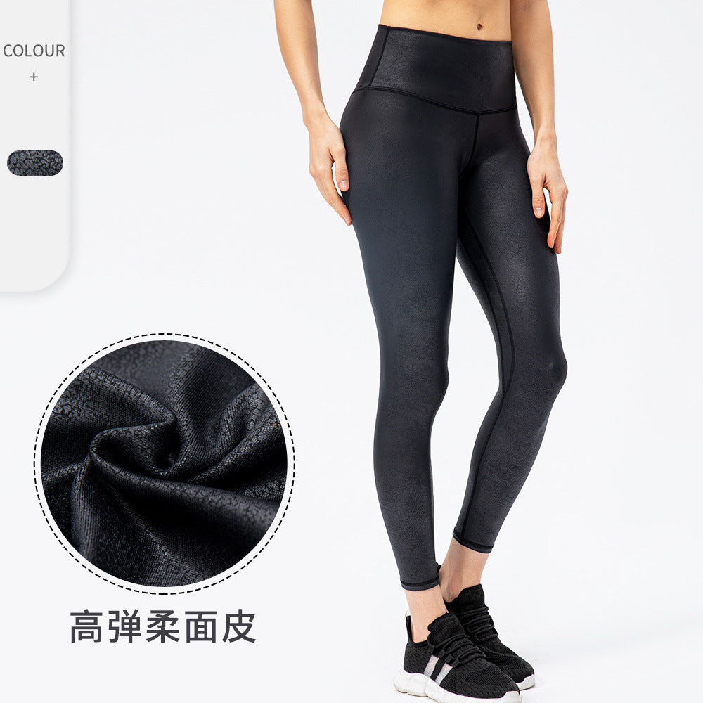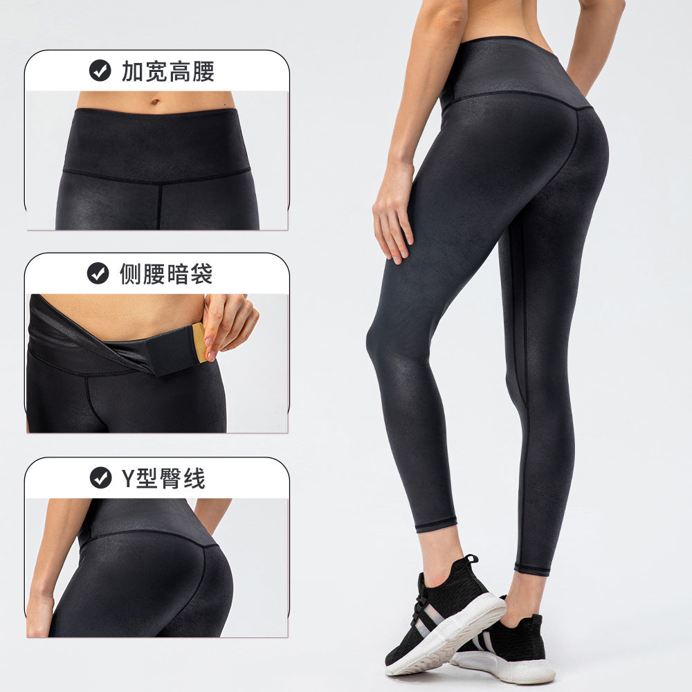 New women's high elastic sports trousers imitation leather tight high waist and hips outdoor running fitness yoga pants 22370