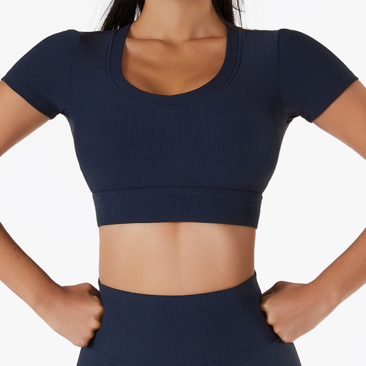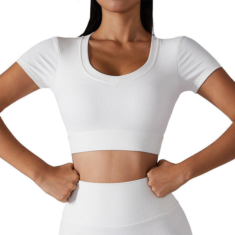 new yoga clothes short-sleeved navel-baring running sports top women's quick-drying nude fitness short-sleeved t-shirt